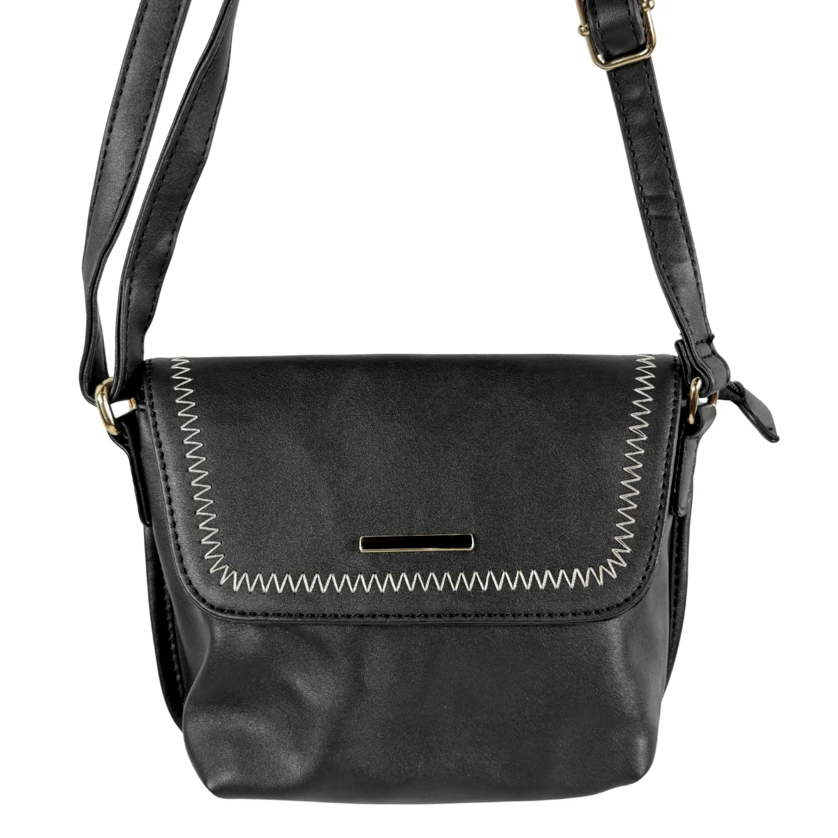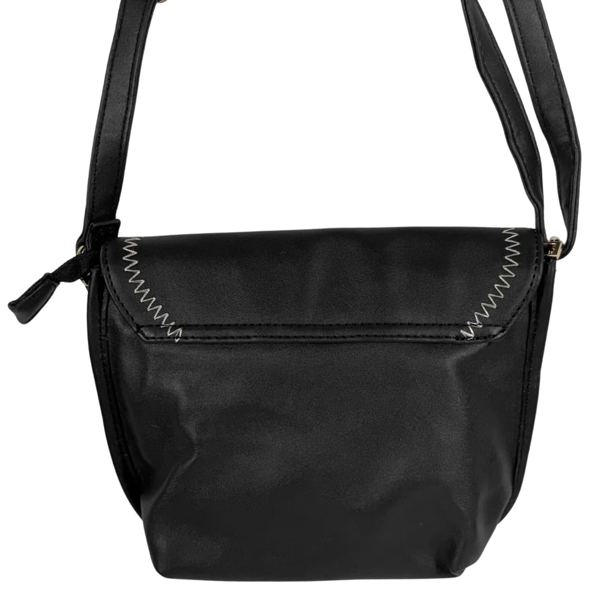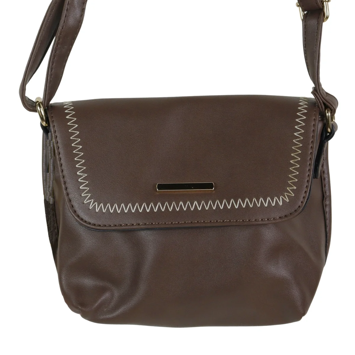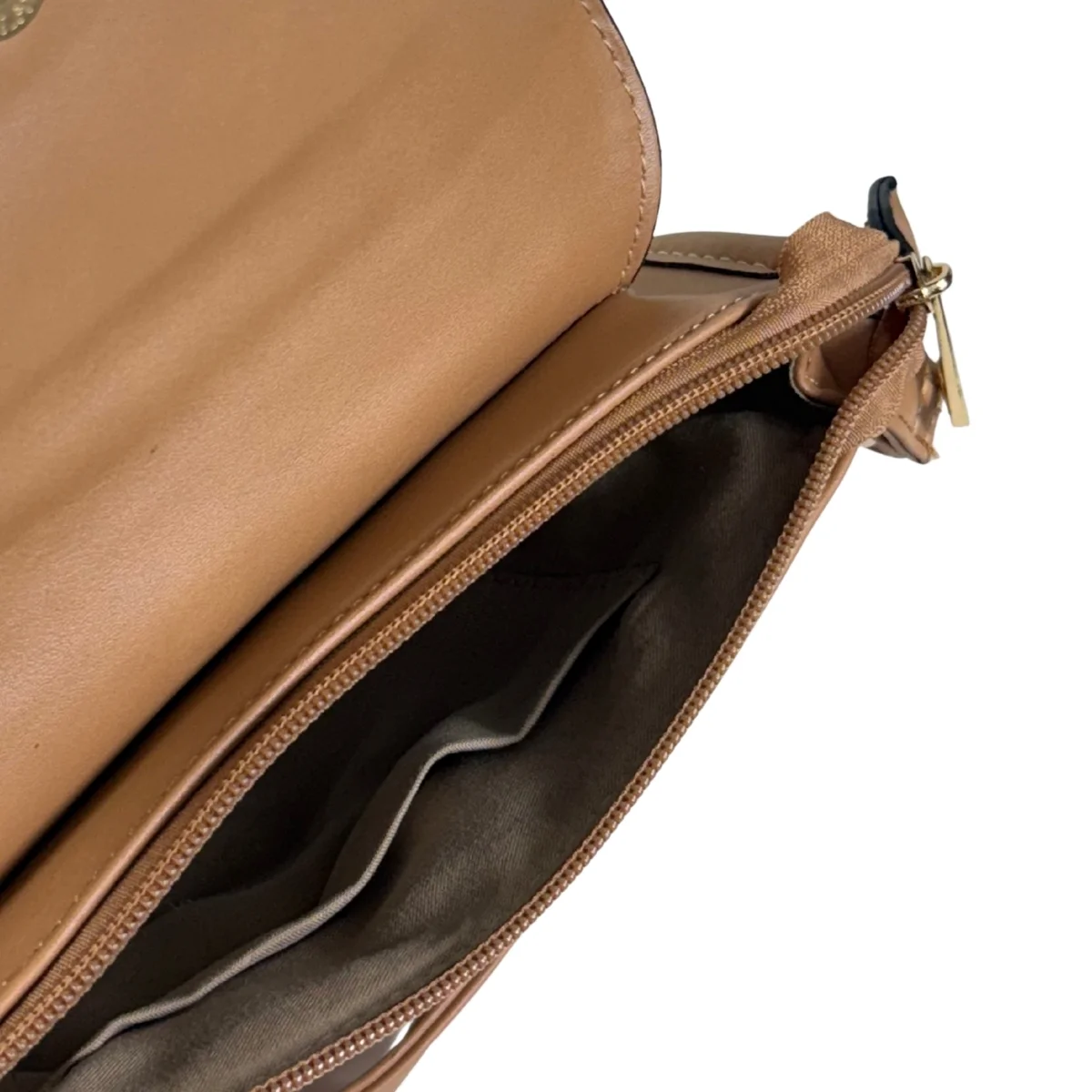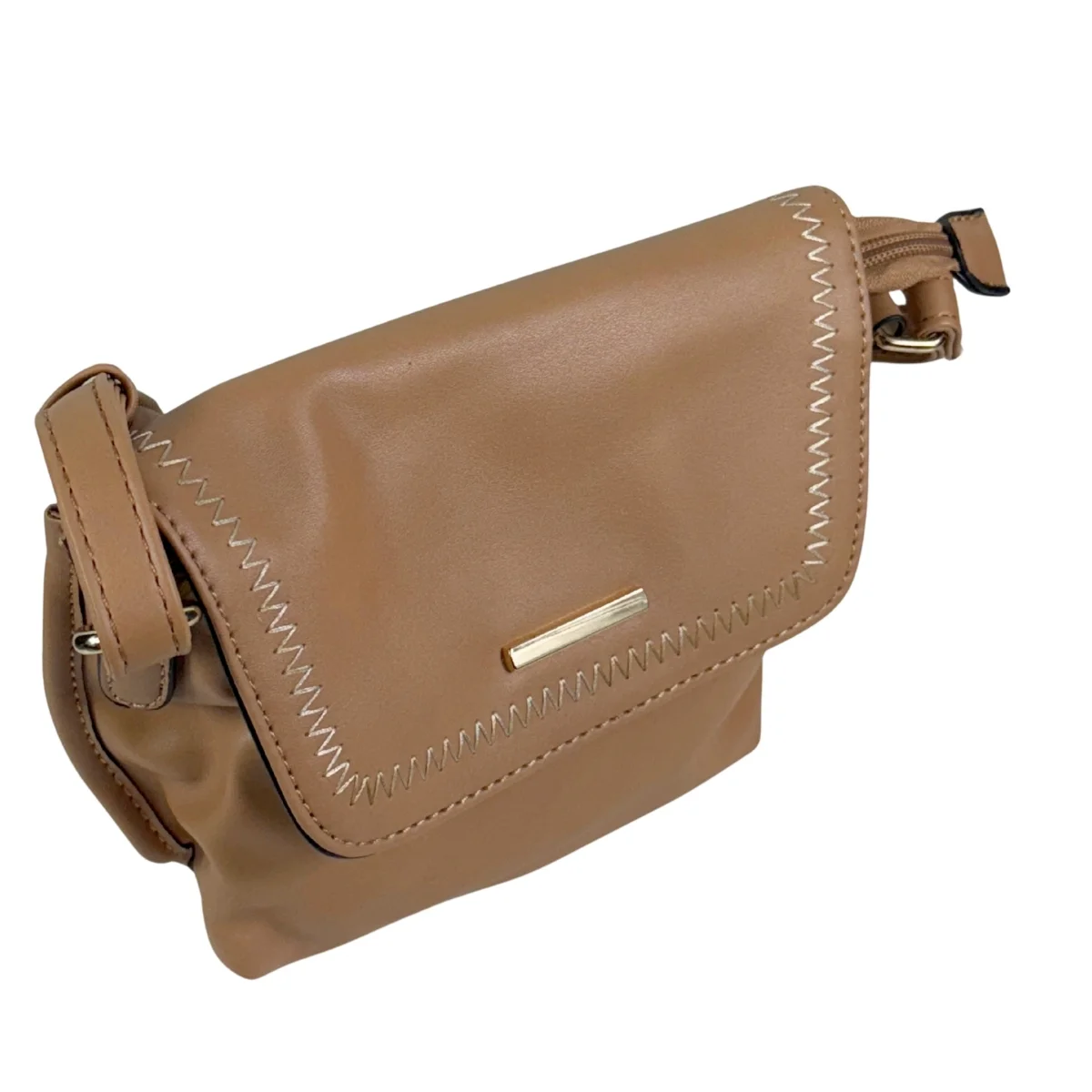 Bolsa feminina, modelo crossbody transversal, confeccionada em material sintético. Possui repartição única com fechamento por zíper e lapela com botão ímã, costura reforçada, alça transversal em tom contrastante, ajustável e não removível e costura no tom.