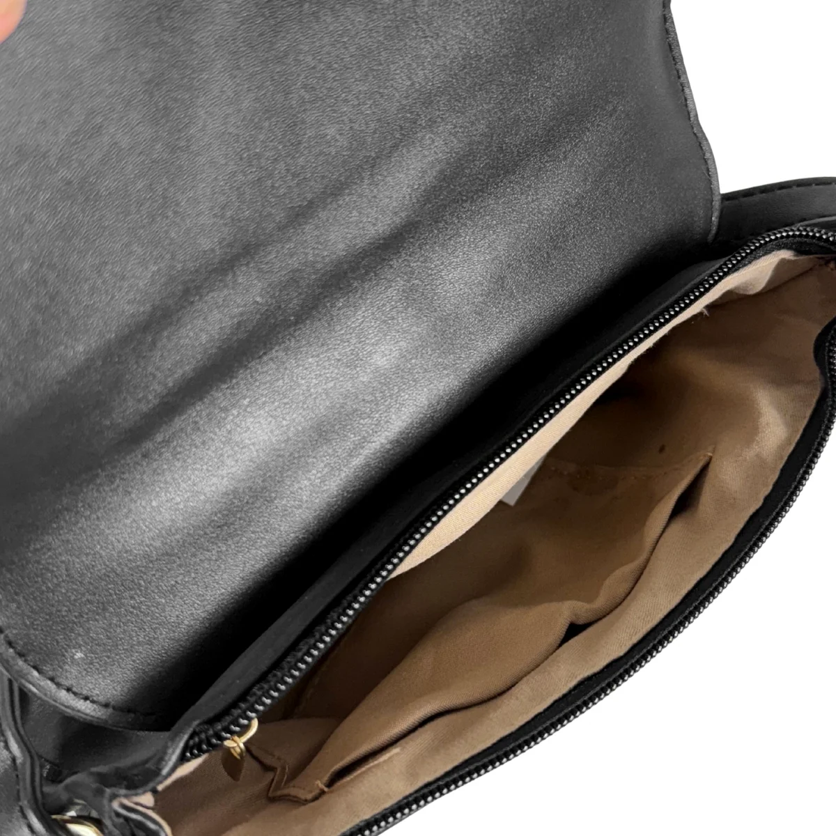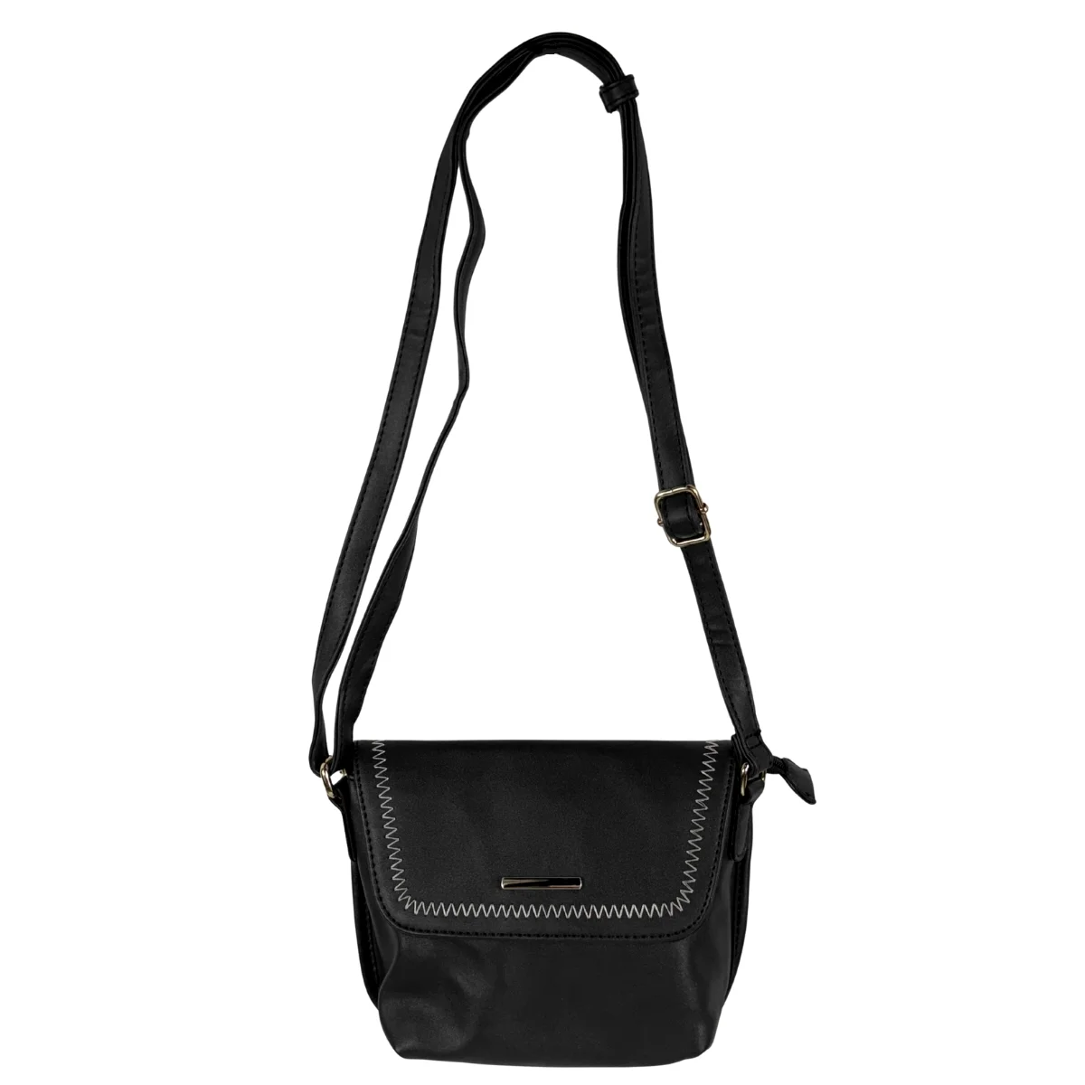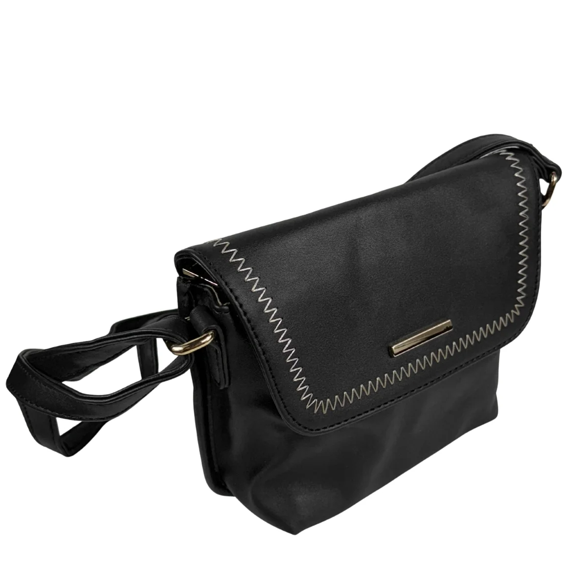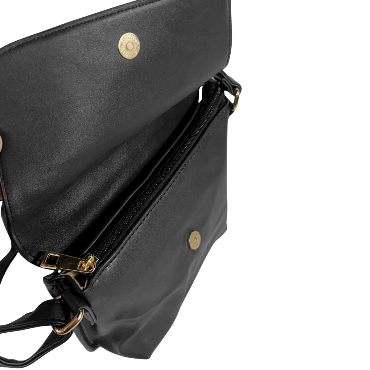 Bolsa feminina, modelo crossbody transversal, confeccionada em material sintético. Possui repartição única com fechamento por zíper e lapela com botão ímã, costura reforçada, alça transversal em tom contrastante, ajustável e não removível e costura no tom.