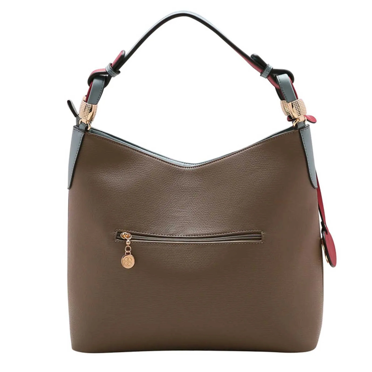 Bolsa Feminina Chenson Linha Texturizado Hobo Poliuretano Fechamento com Zíper Forro em tecido personalizado Compartimento para pequenos objetos Bolso interno Acabamento em costura contrastante