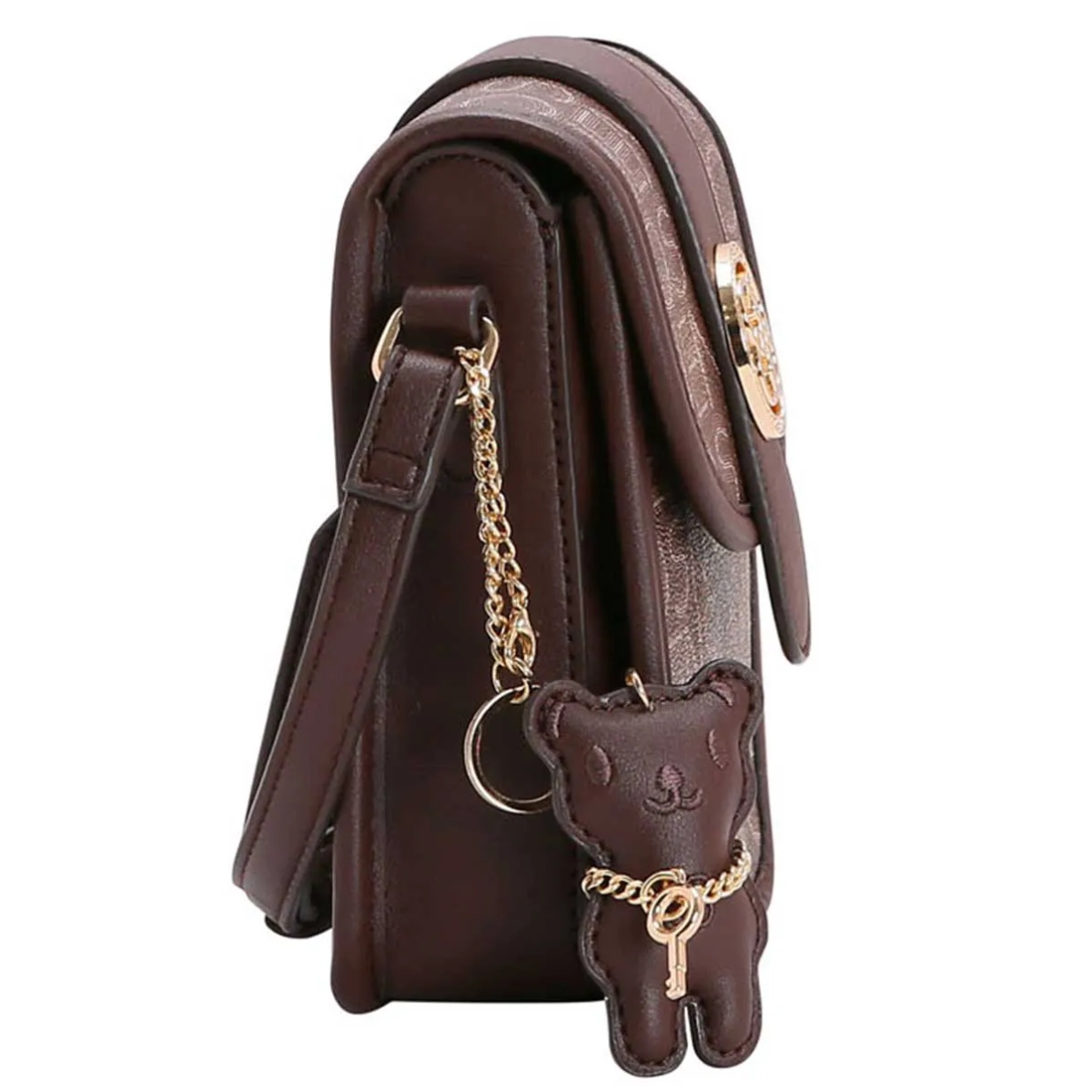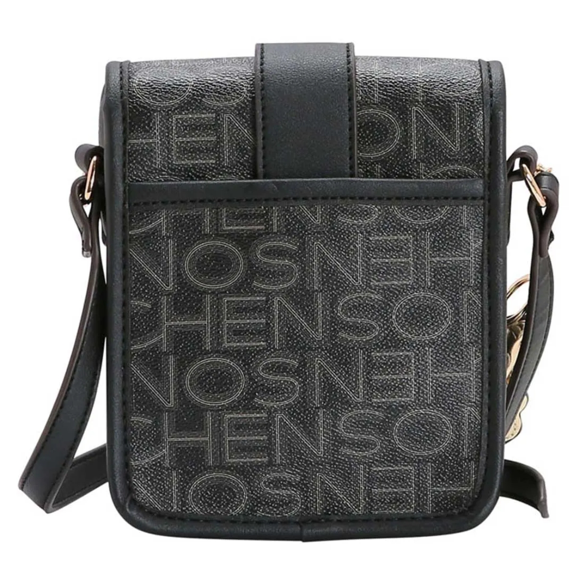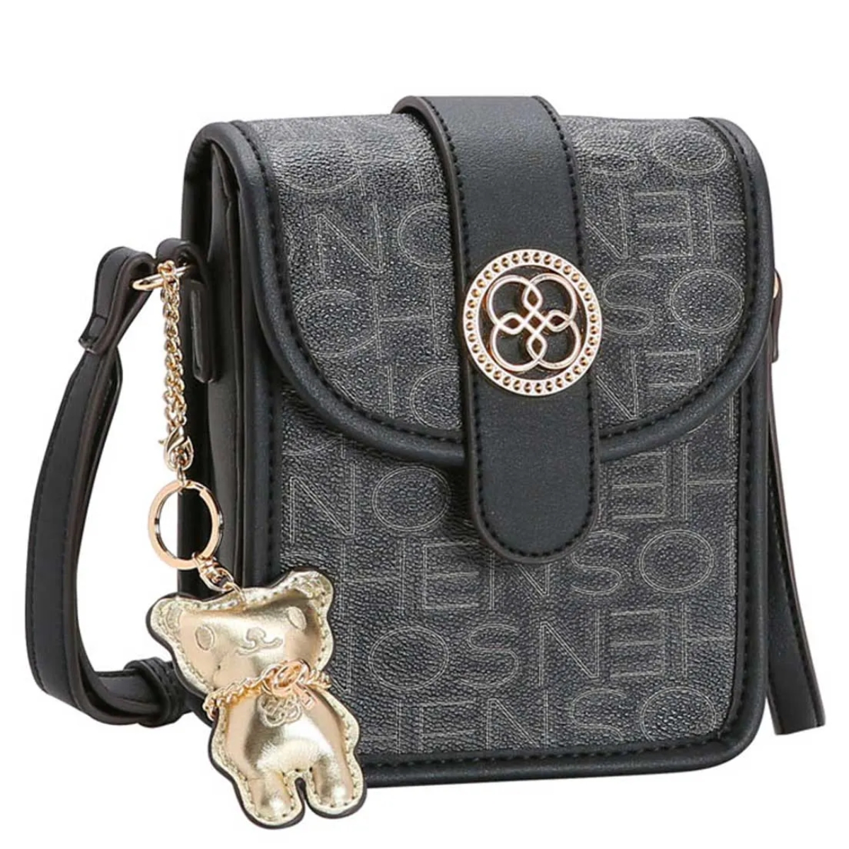 Bolsa Feminina Chenson Basic Monograma Transversal 3483833 poliuretano fechamento com zíper forro em tecido personalizado compartimento para pequenos objetos bolso interno detalhes na frente acabamento em costura contrastante acompanha Chaveiro Ursinho Chenson Removivél