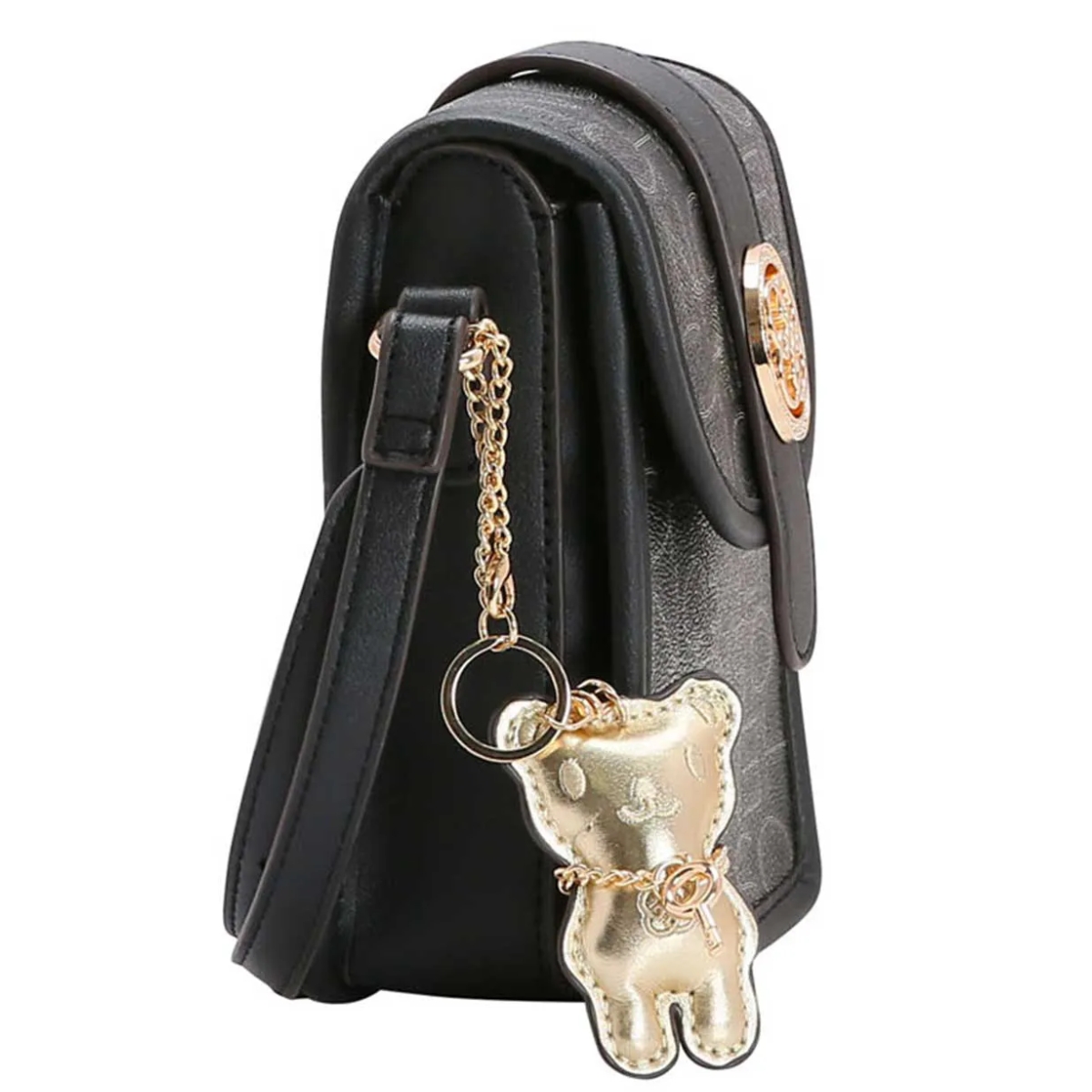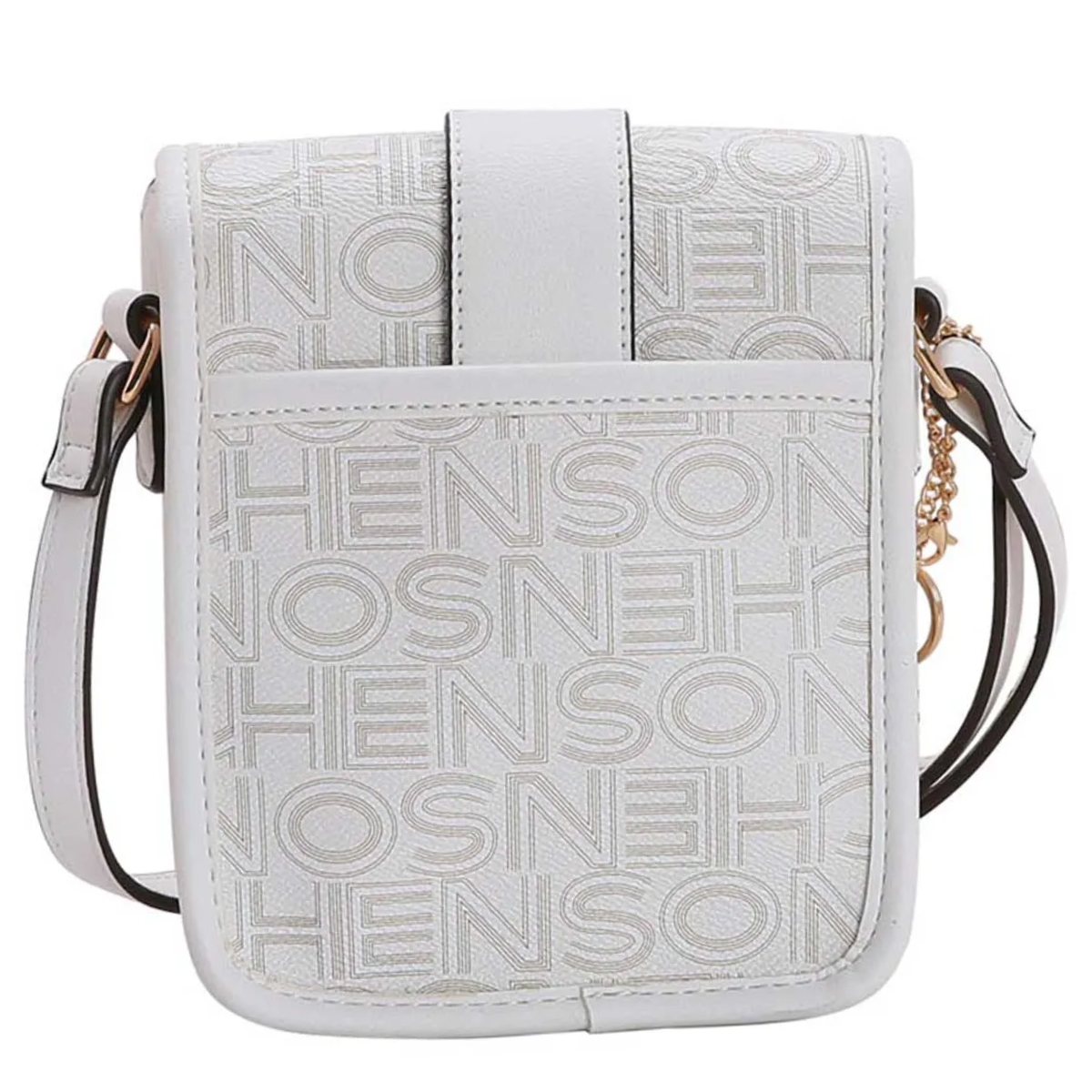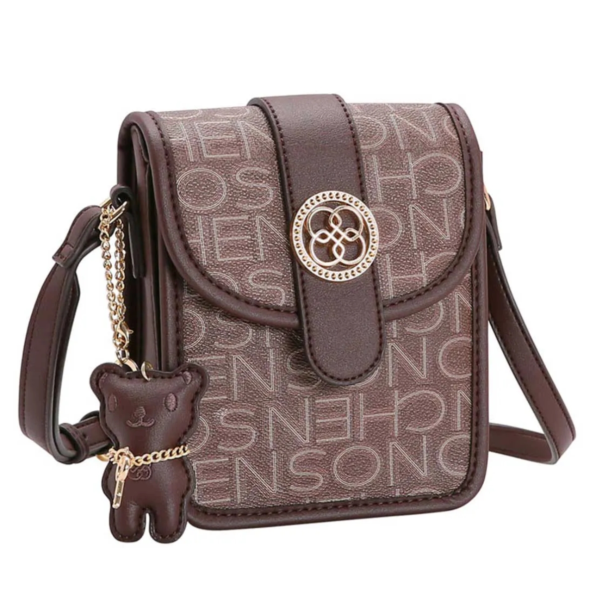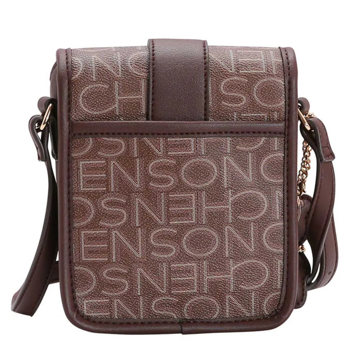 Bolsa Feminina Chenson Basic Monograma Transversal 3483833 poliuretano fechamento com zíper forro em tecido personalizado compartimento para pequenos objetos bolso interno detalhes na frente acabamento em costura contrastante acompanha Chaveiro Ursinho Chenson Removivél