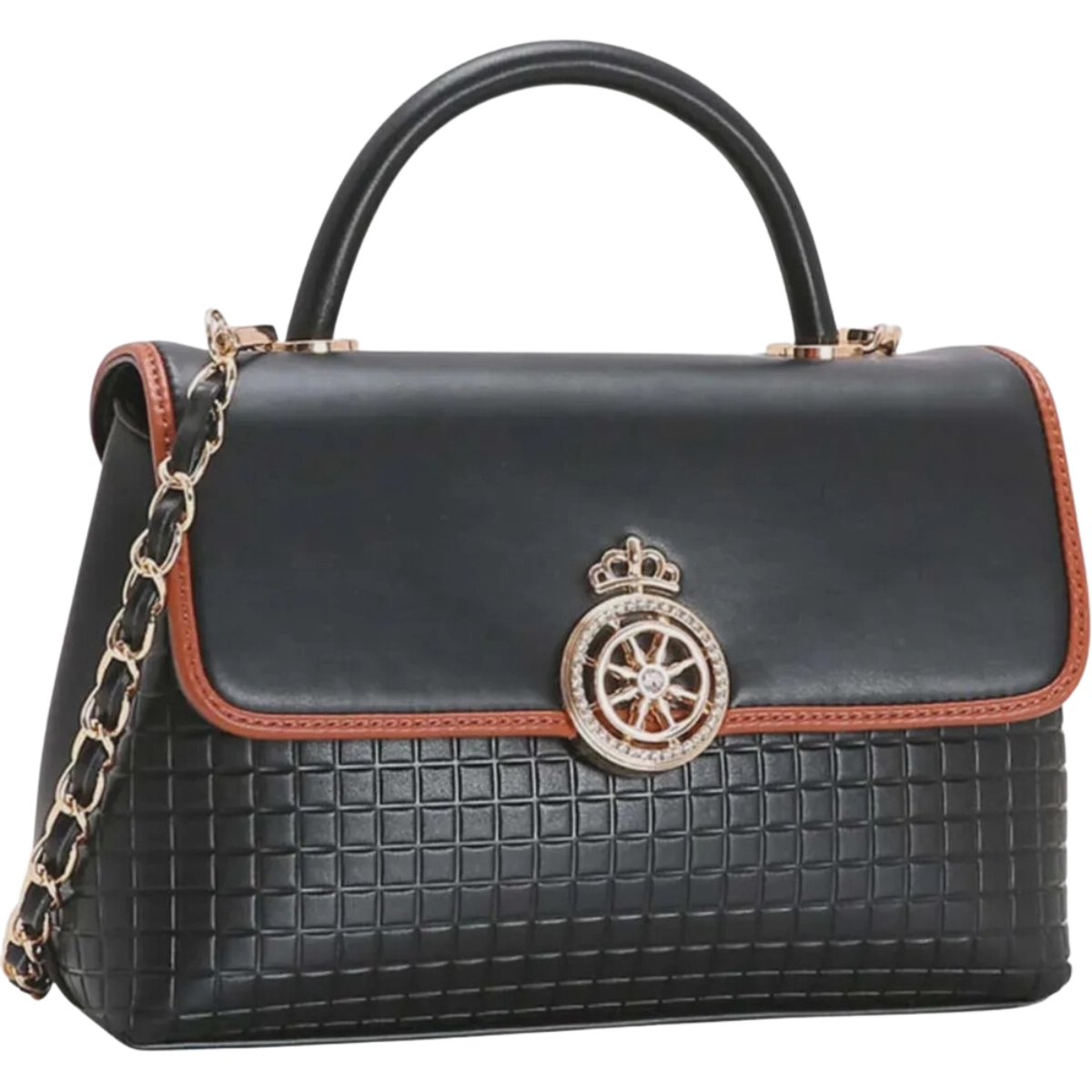 Bolsa Feminina Chenson Mini Tramas Mão 3483954 poliuretano fechamento com zíper forro em tecido personalizado compartimento para pequenos objetos bolso interno detalhes frontal em pedrarias acabamento em costura contrastante