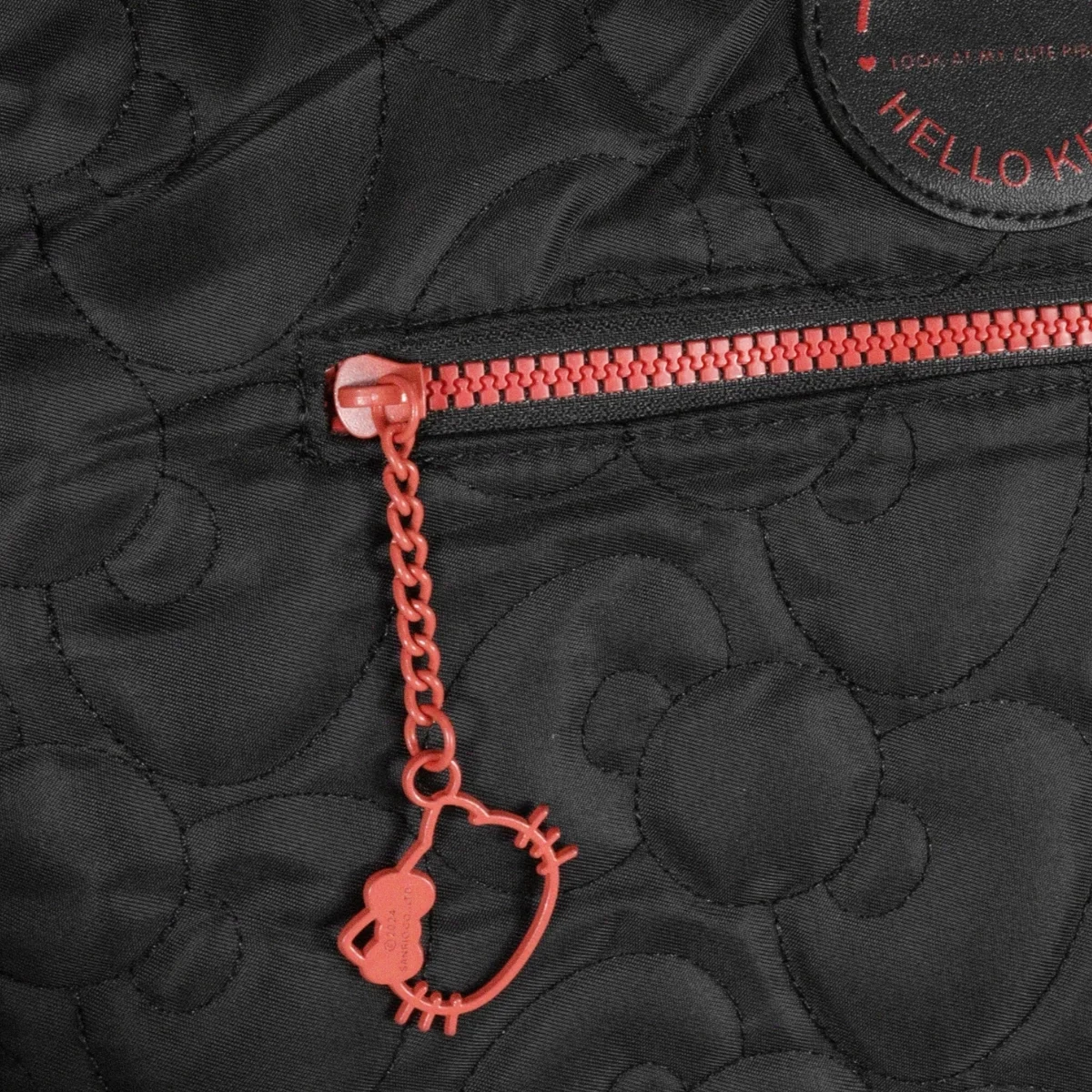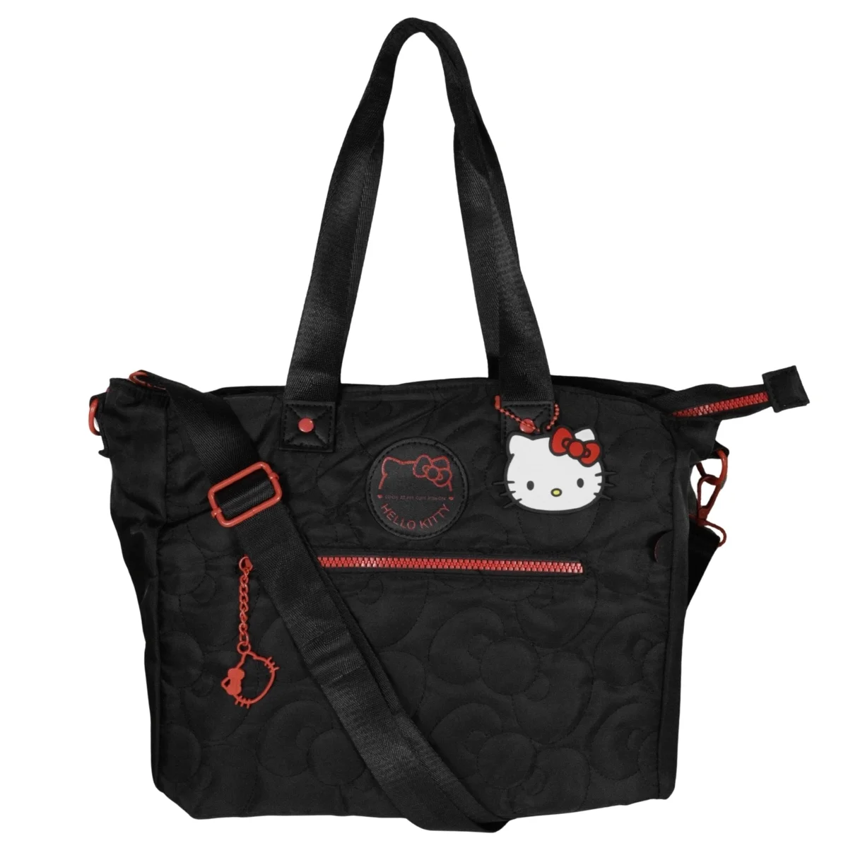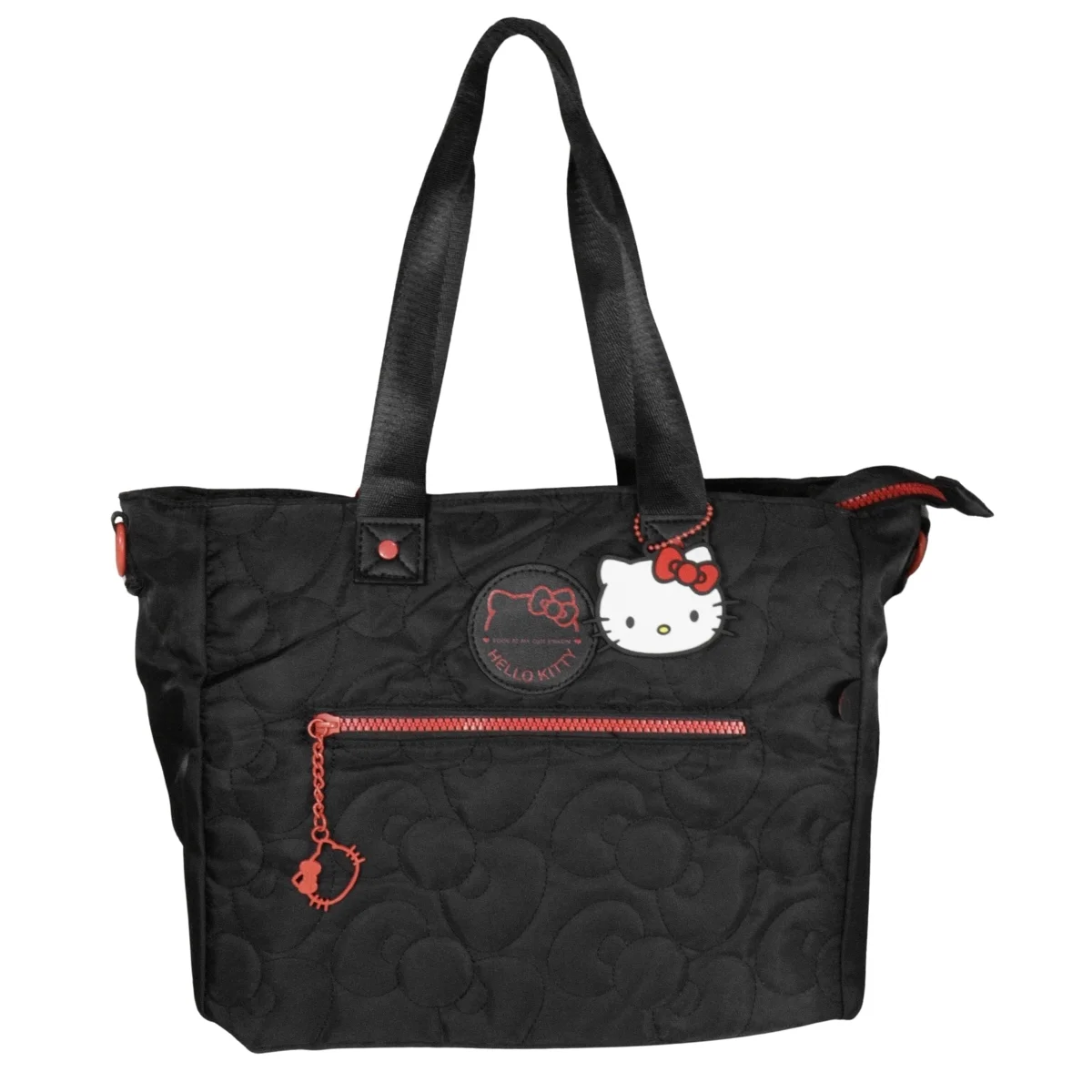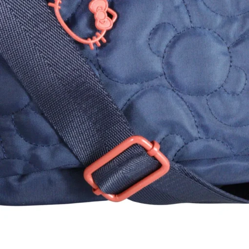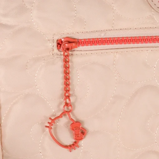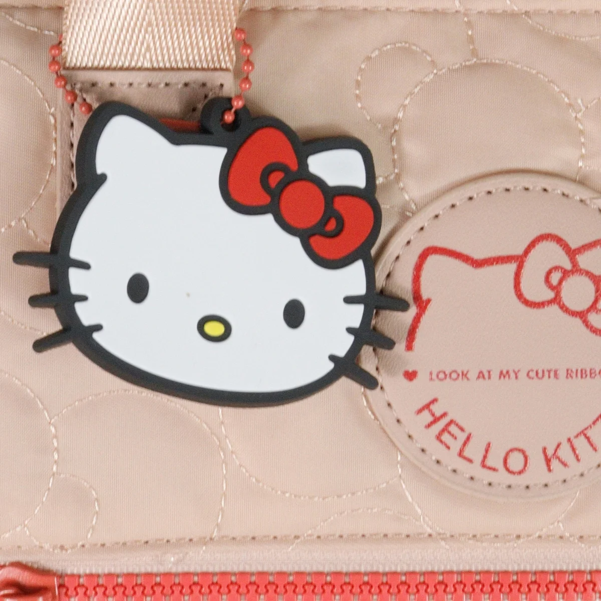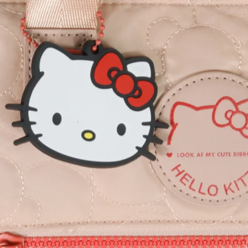 Modelo espaçoso em nylon com bordado matelassê em formato de laço e patch frontal com a marca da gatinha! Possui duas opções de alças, sendo uma delas removível e ajustável. Acompanha chaveiro principal com hello kitty em borracha. Puxadores numa fofura que só essa gata poderia oferecer, além de um forro interno personalizado e diversos compartimentos.