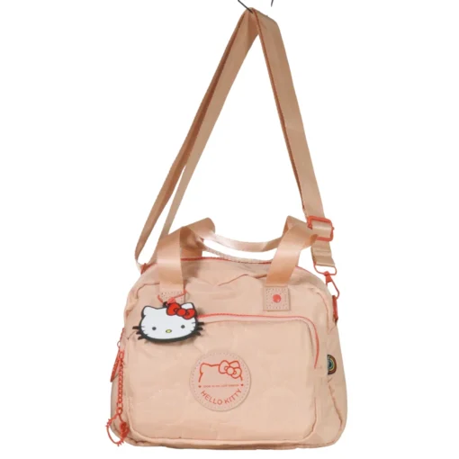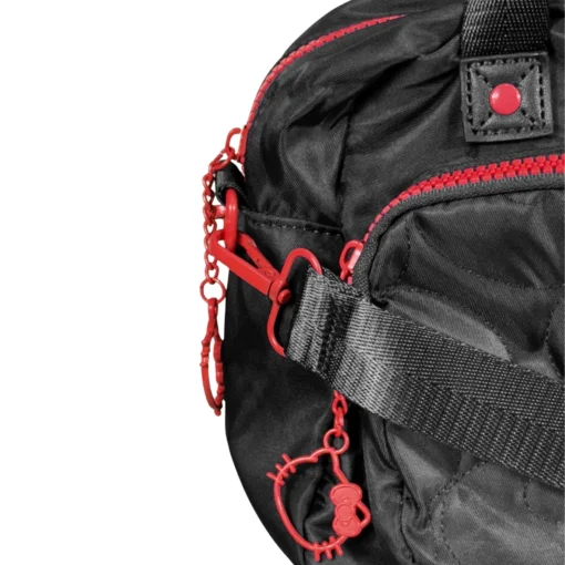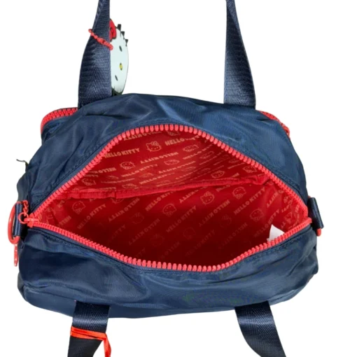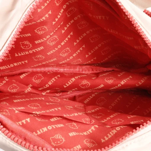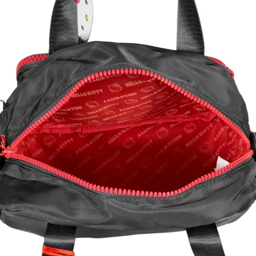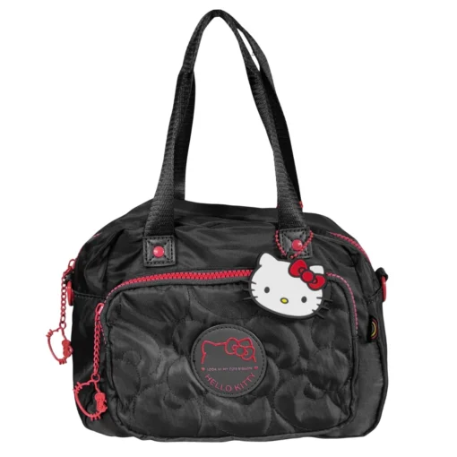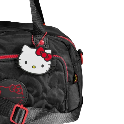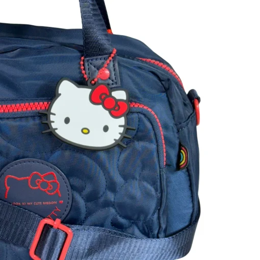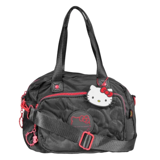 Modelo compacto em nylon com bordado metalassê e patch frontal com a marca da gatinha! Possui uma alça ajustável. Acompanha chaveiro principal com hello kitty em borracha. Puxadores numa fofura que só essa gata poderia oferecer, além de um forro interno personalizado.