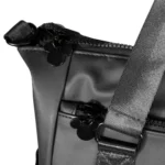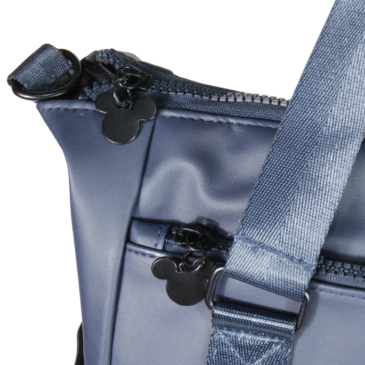 Confeccionadas em PVC liso com silhueta prensada » Etiqueta de PVC personalizada e silk com assinatura do Mickey » Metais preto » Forro preto.