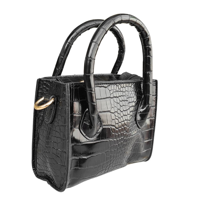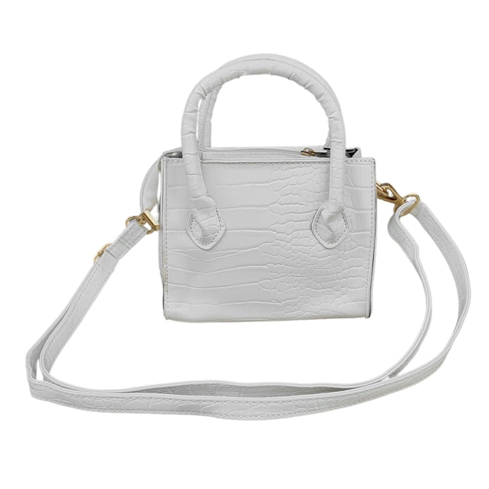 Possui duas alças, sendo uma delas removível: Alça de mão + alça transversal removível