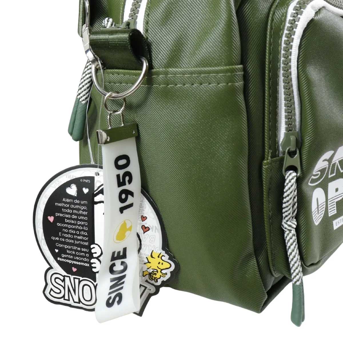 A nova linha Snoopy, com material resistente e textura listrada, oferece um visual sportywear moderno e descolado.