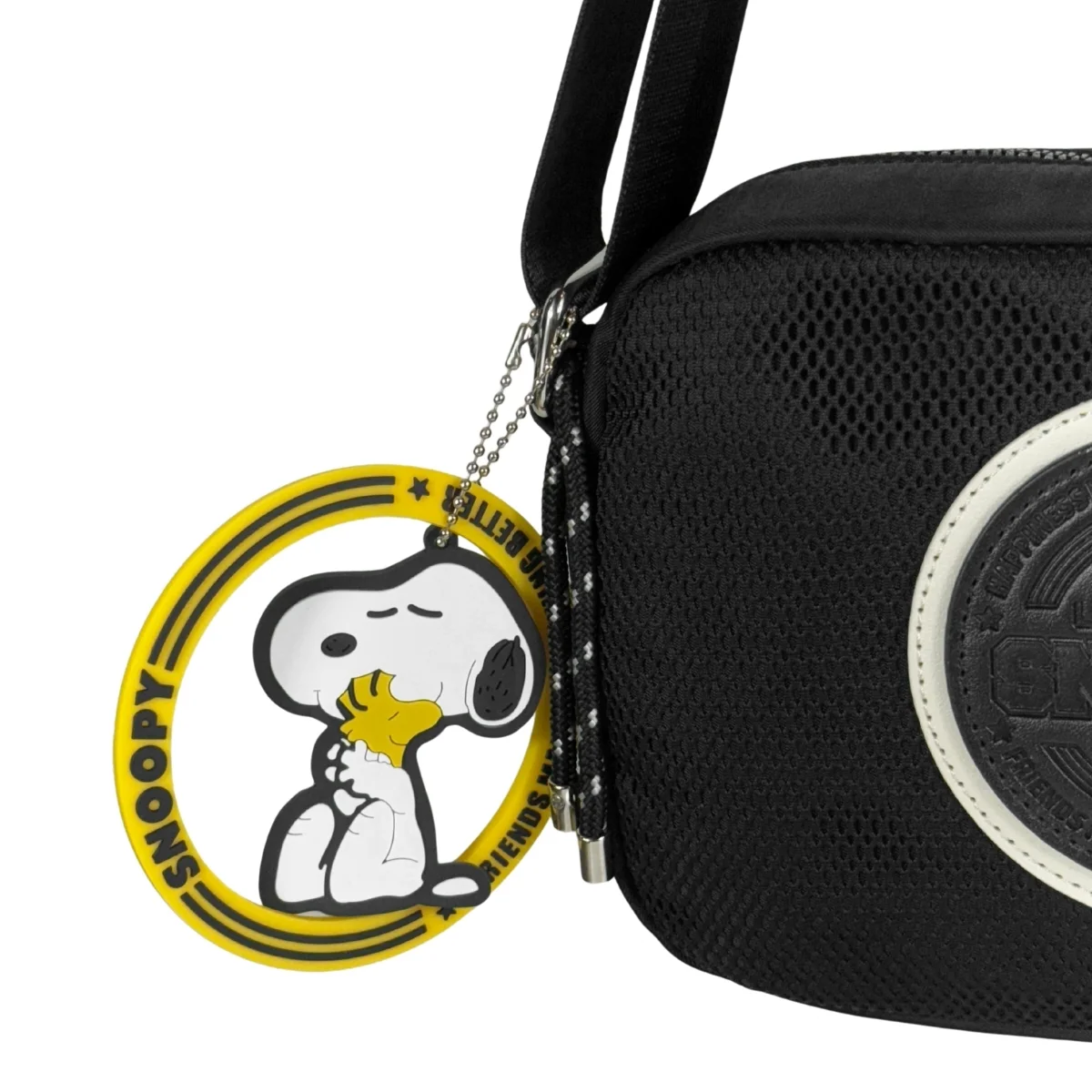 A linha inspirada nos esportes coletivos e suas torcidas traz elementos do streetwear com um toque alegre e icônico do beagle mais amado, Snoopy, e sua turma. A bolsa é confeccionada em nylon, com frente de material telado, garantindo durabilidade e um visual moderno. A alça acetinada traz sofisticação e conforto, enquanto os puxadores de corda e o chaveiro de borracha completam o estilo descontraído e esportivo da peça. A etiqueta de PVC com arte prensada reforça a autenticidade do design exclusivo.