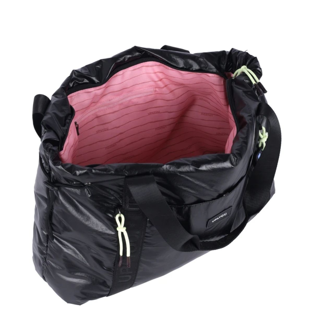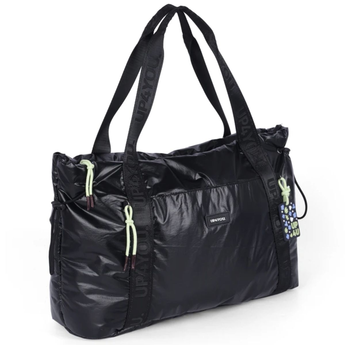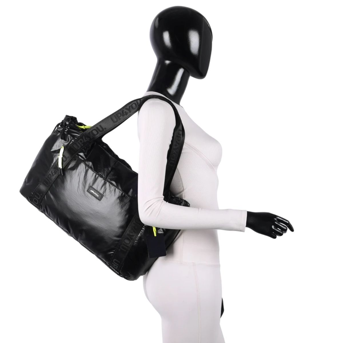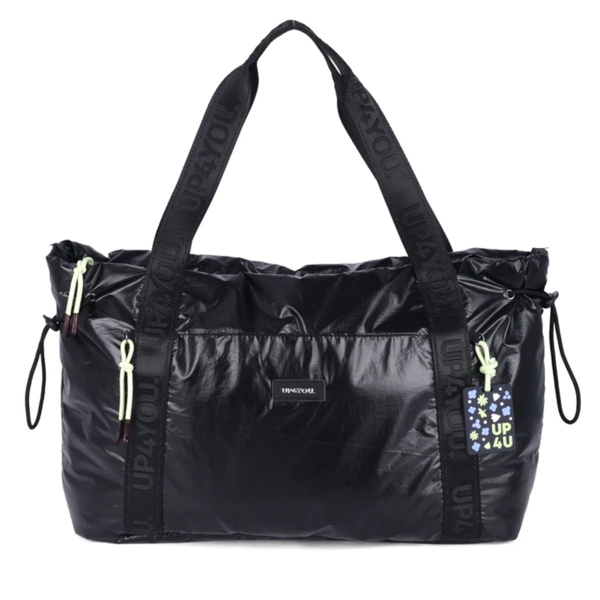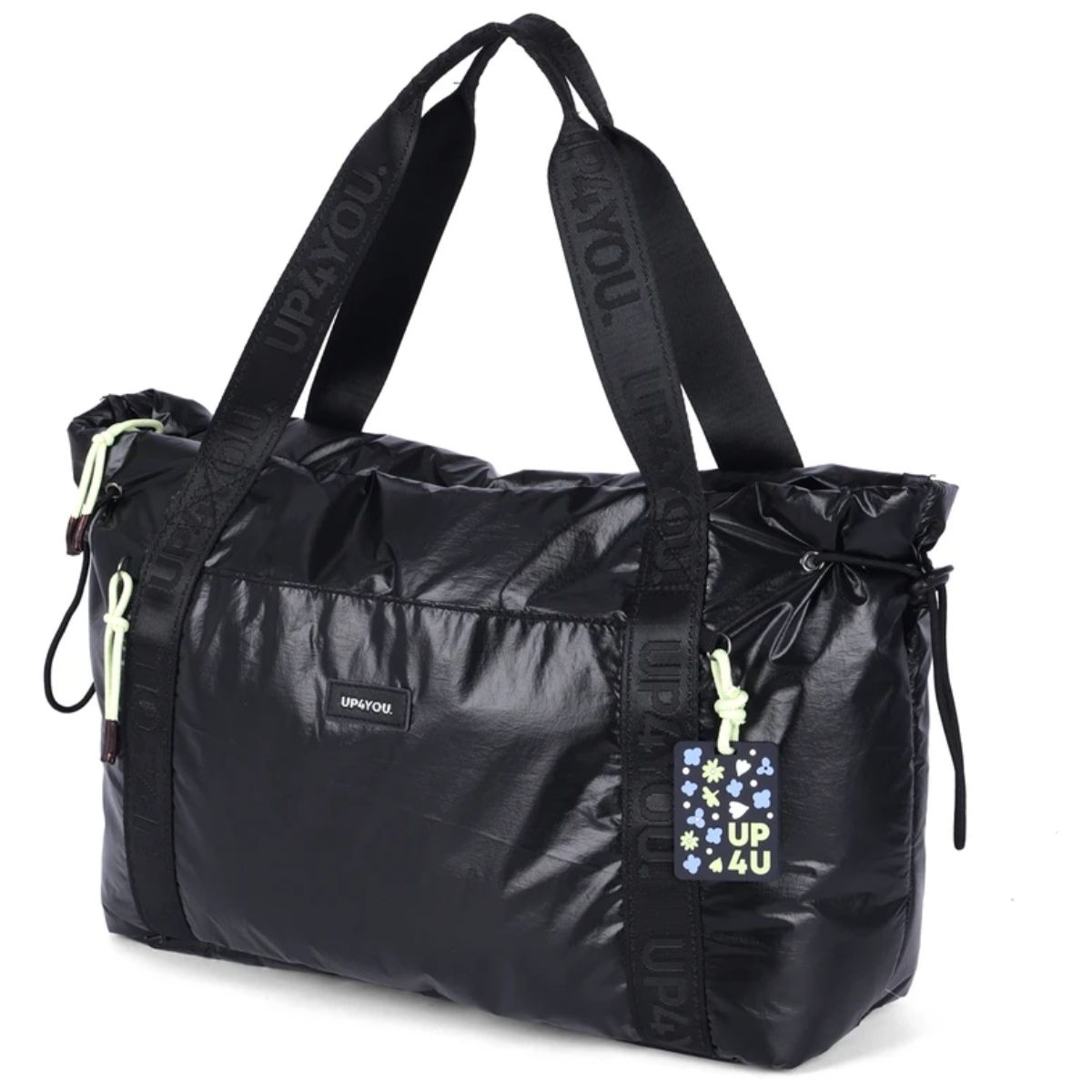 Esta sacola é a escolha ideal para quem valoriza conforto, estilo e praticidade. Com um design despojado, ela se torna a peça essencial para aqueles com uma agenda agitada, saindo do trabalho diretamente para a academia, parque ou eventos descontraídos.Possui alça curta, perfeita para uso no ombro, personalizada com o logo UP4You em nylon altamente resistente e confortável.