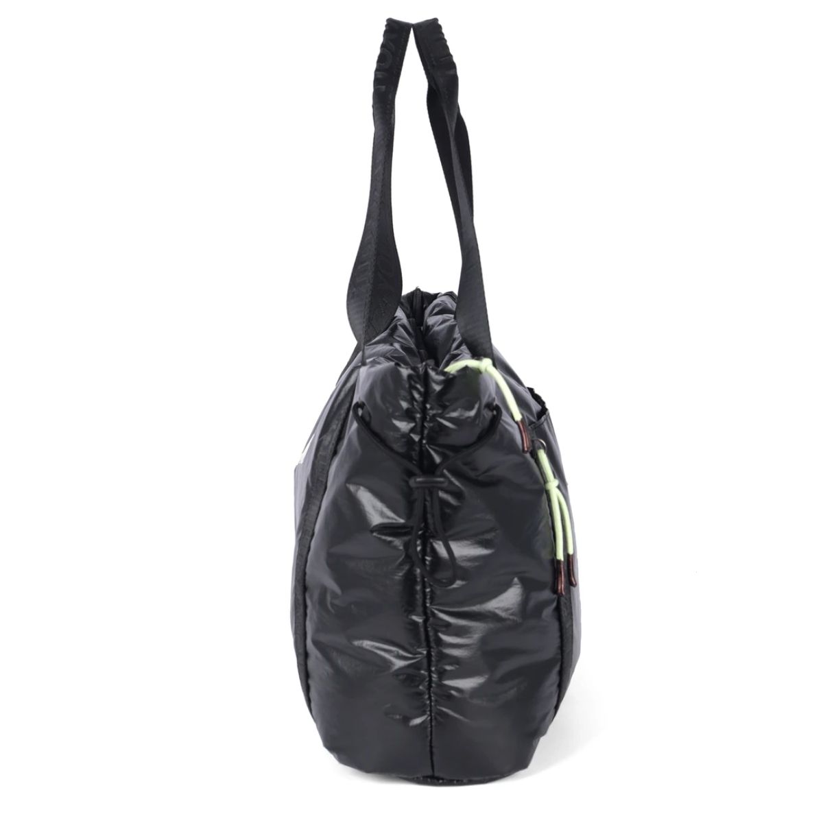O chaveiro emborrachado personalizado adiciona um toque de estilo, enquanto os zíperes com puxadores em cadarço proporcionam facilidade de uso. Feita inteiramente em nylon, com o logo central emborrachado, esta sacola inclui ajustes laterais com elásticos para maior versatilidade.