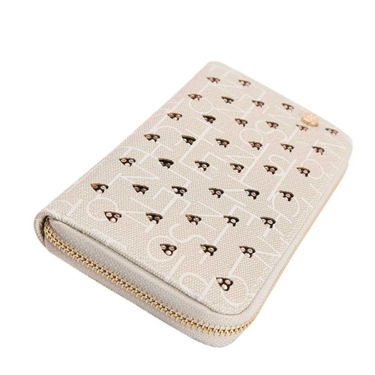 Carteira Feminina Chenson New Cristal Mão 2415210 poliuretano fechamento com zíper e botão torção forro em tecido personalizado compartimento para pequenos objetos detalhes na frente de coração com cristais acabamento em costura contrastante
