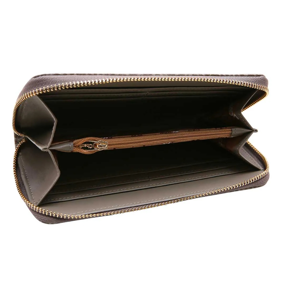 Carteira Feminina Chenson Linha Duo Monograma Poliuretano Fechamento com Zíper Forro em tecido personalizado Compartimento para pequenos objetos Bolso interno Acabamento em costura contrastante