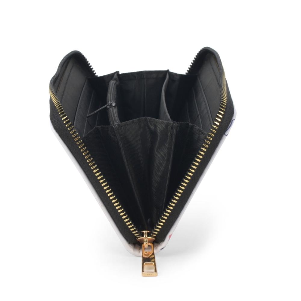 Compartimentos e divisórias para cartões e notas.