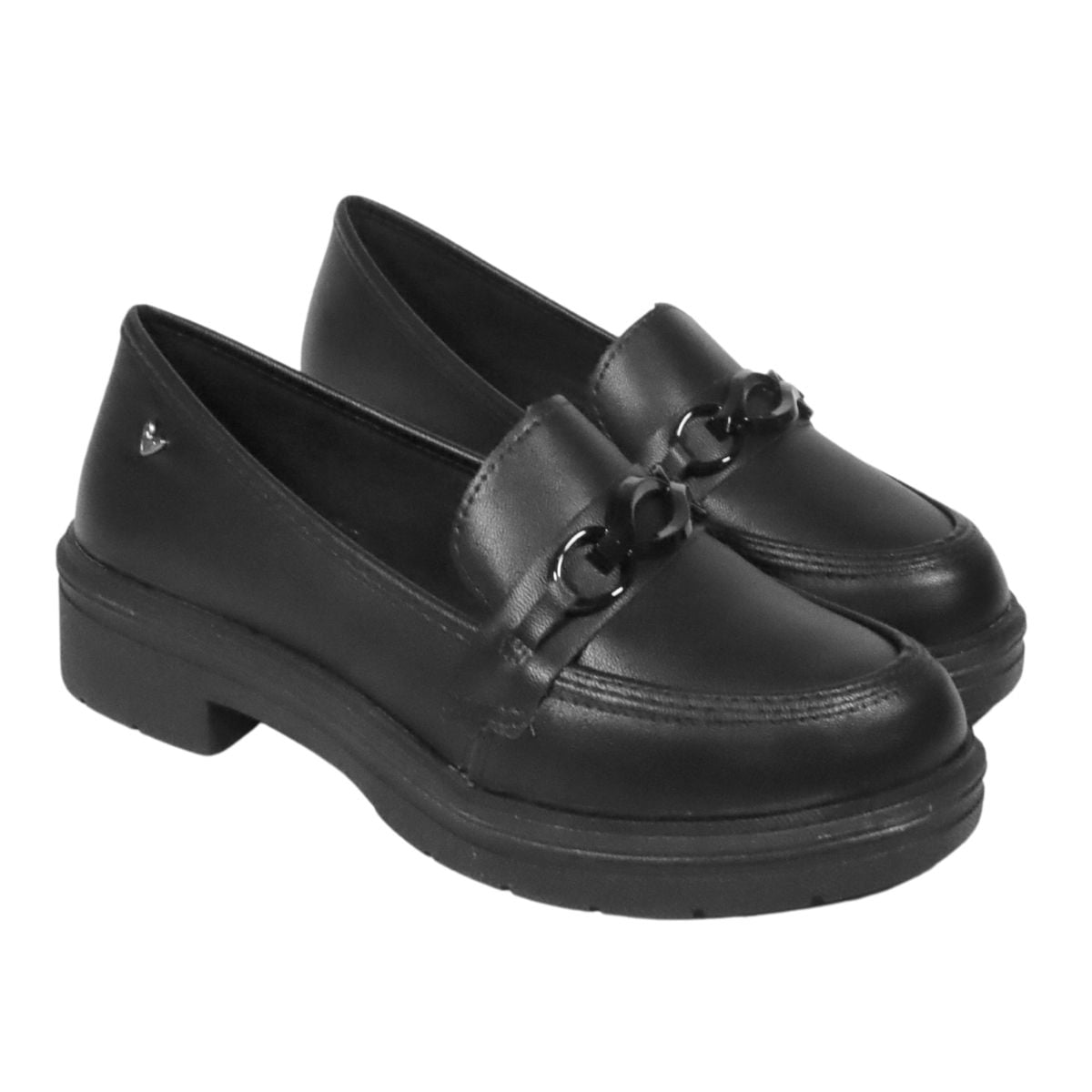 O Sapato Mississipi Loafer MI881 é a escolha ideal para quem busca um calçado estiloso e confortável para o dia a dia. Seu design clássico loafer, com salto bloco baixo de 4 cm, garante um visual elegante e atemporal. O destaque desse sapato fica por conta do detalhe de corrente aplicada na parte frontal, que adiciona um toque moderno e trendy ao modelo.