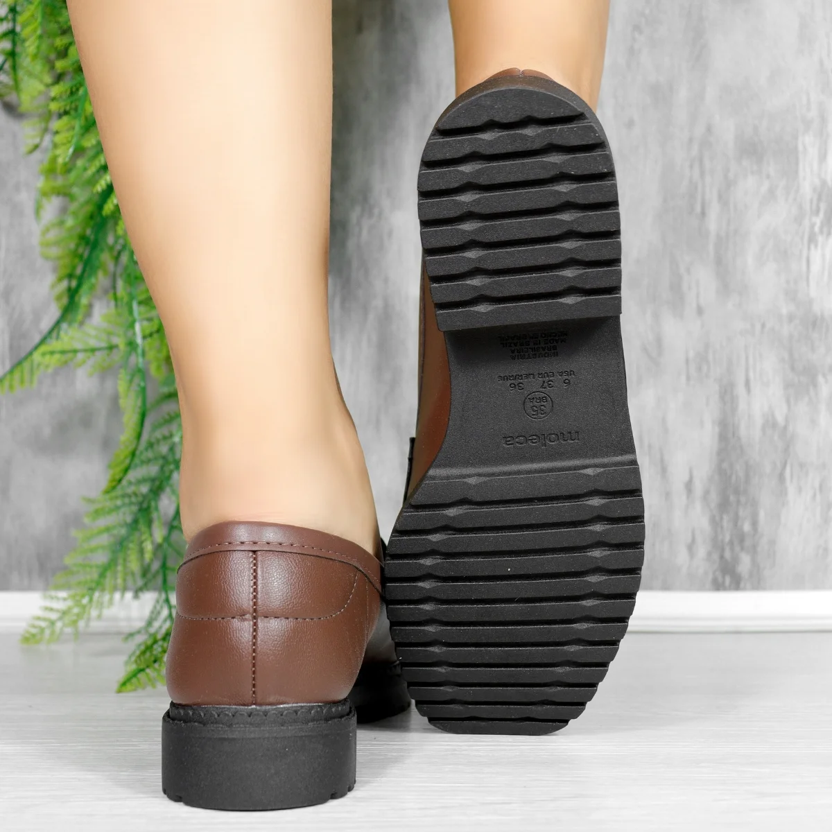 A sola de borracha antiderrapante oferece segurança em cada passo, evitando escorregões e proporcionando estabilidade. Com bico quadrado e textura lisa, este mocassim é uma opção que une modernidade e sofisticação, perfeita para mulheres que valorizam a elegância sem abrir mão do conforto.