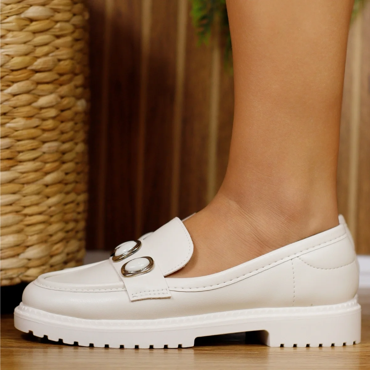 Versátil, esse mocassim combina facilmente com diferentes estilos — desde produções casuais com jeans até looks mais arrumados com alfaiataria, saias ou vestidos.