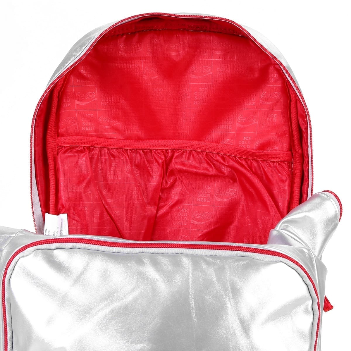 A Mochila para Notebook Coca Cola Silver, é confeccionada em Pu na cor prata lunar, logo em bordado 3D, em forro personalizado na cor vermelha.
