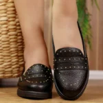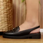 Mule slingback feminina Beira Rio, confeccionada em material sintético de acabamento liso na cor preta. Possui design inspirado no mocassim, com aplicação de pequenas tachas douradas que acrescentam um toque moderno e elegante. O modelo conta com parte traseira aberta e elástico para melhor ajuste e praticidade ao calçar. O solado baixo e confortável garante uso prolongado no dia a dia, sendo ideal para compor looks casuais ou sofisticados com muito estilo e versatilidade.