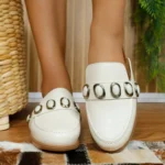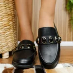 Com design moderno e detalhe de maxi argolas, o Tamanco Mule Moleca combina estilo e conforto em um modelo fácil de calçar.
