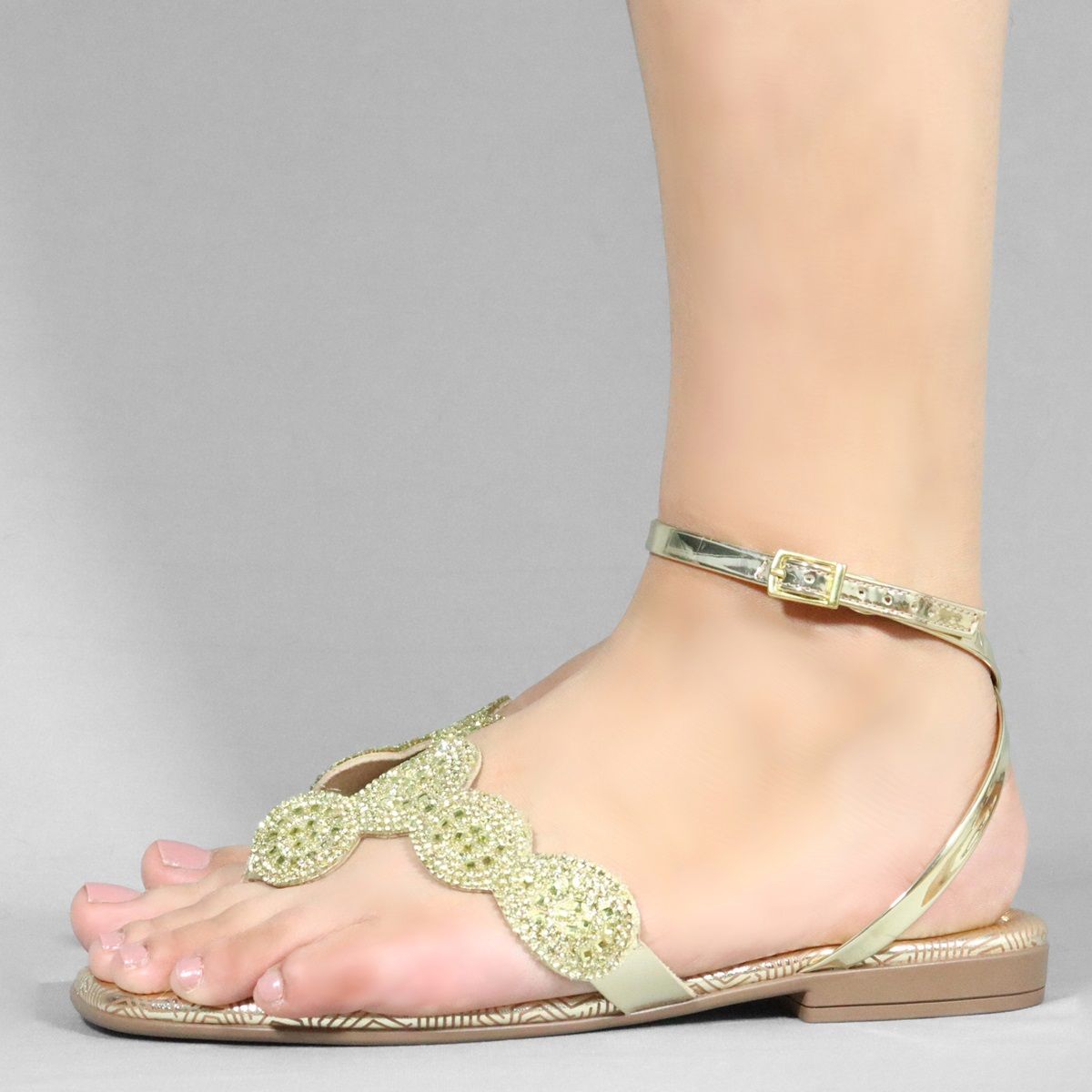 Desfrute do equilíbrio perfeito entre sofisticação e conforto com esta deslumbrante rasteira. Confeccionada com atenção aos detalhes e utilizando materiais de qualidade superior, esta sandália é um exemplo de beleza refinada e praticidade para os seus pés. Os cristais delicadamente posicionados ao longo da sandália conferem um brilho único, captando a luz de maneira sutil e adicionando um toque de glamour a qualquer visual. Permita que seus pés desfrutem do conforto e da beleza que merecem, sem comprometer seu estilo.