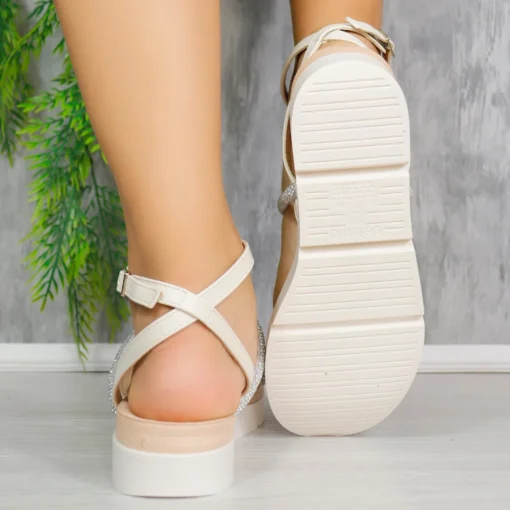Sandália feminina Beira Rio, confeccionada em material sintético de alta qualidade, com tiras finas adornadas por aplicações de brilhos que trazem um toque sofisticado e moderno. Possui fechamento por fivela ajustável no tornozelo, garantindo melhor fixação e segurança ao caminhar. O solado é emborrachado com leve plataforma e design tratorado, proporcionando conforto e aderência. Ideal para compor looks casuais ou festivos, unindo elegância e praticidade para diversas ocasiões.