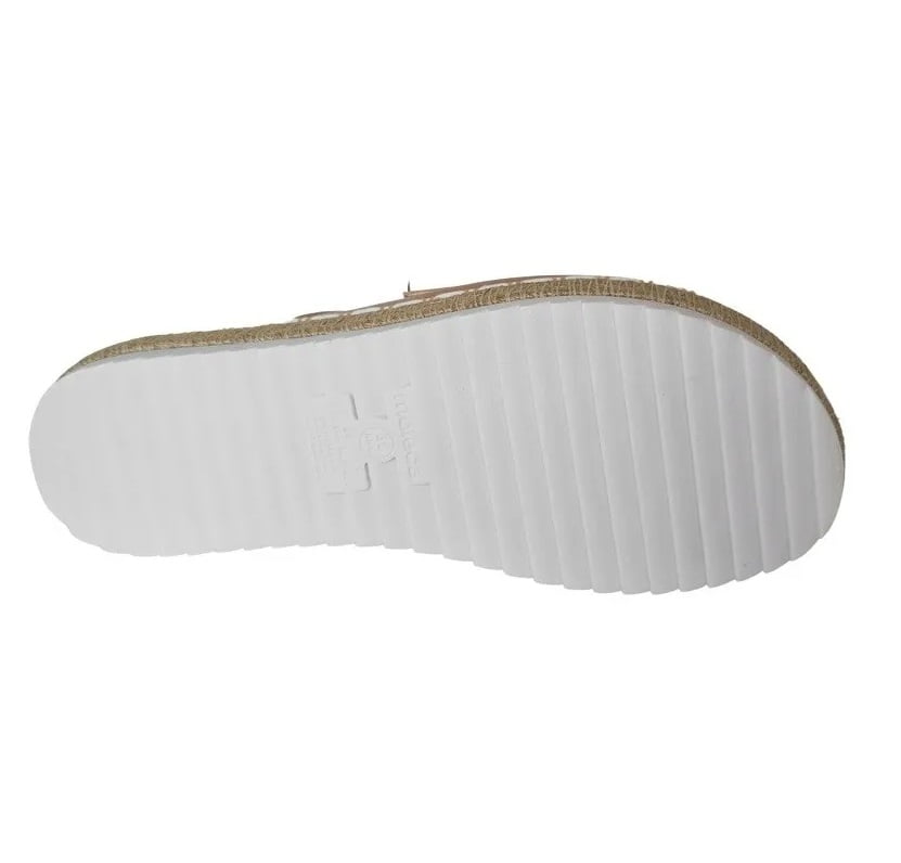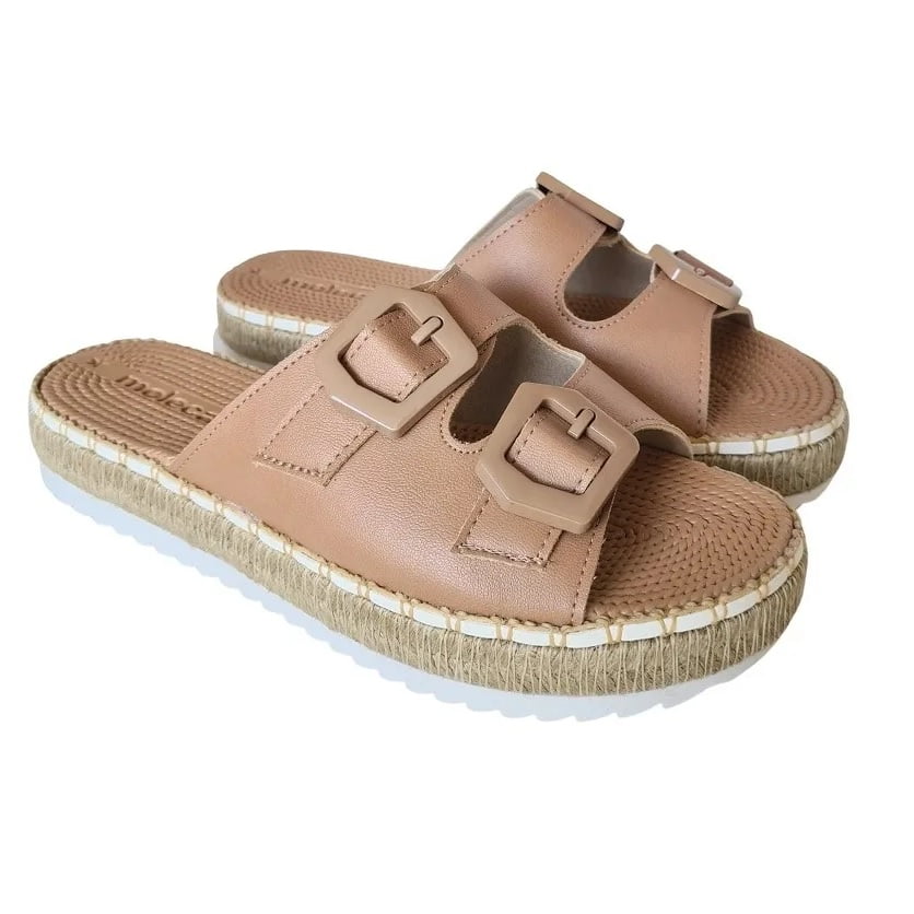 Detalhes: Duas tiras com fivelas de enfeites, corda na lateral do solado, palmilha macia.