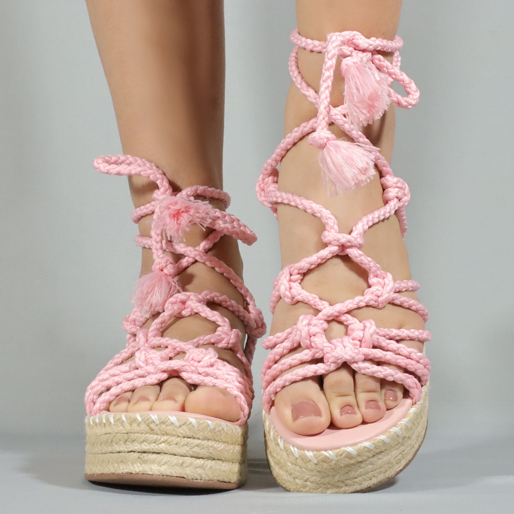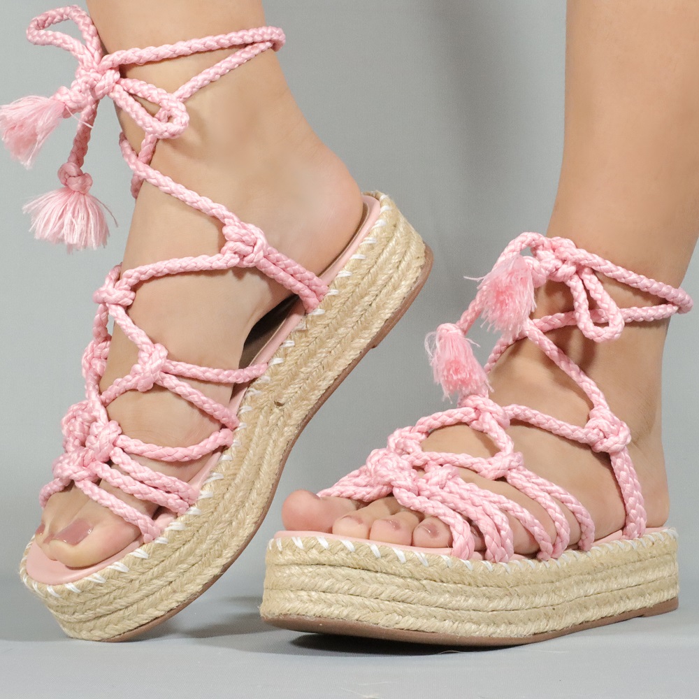 Sandália Flatform de Amarrar no Tornozelo Feminina Rosa