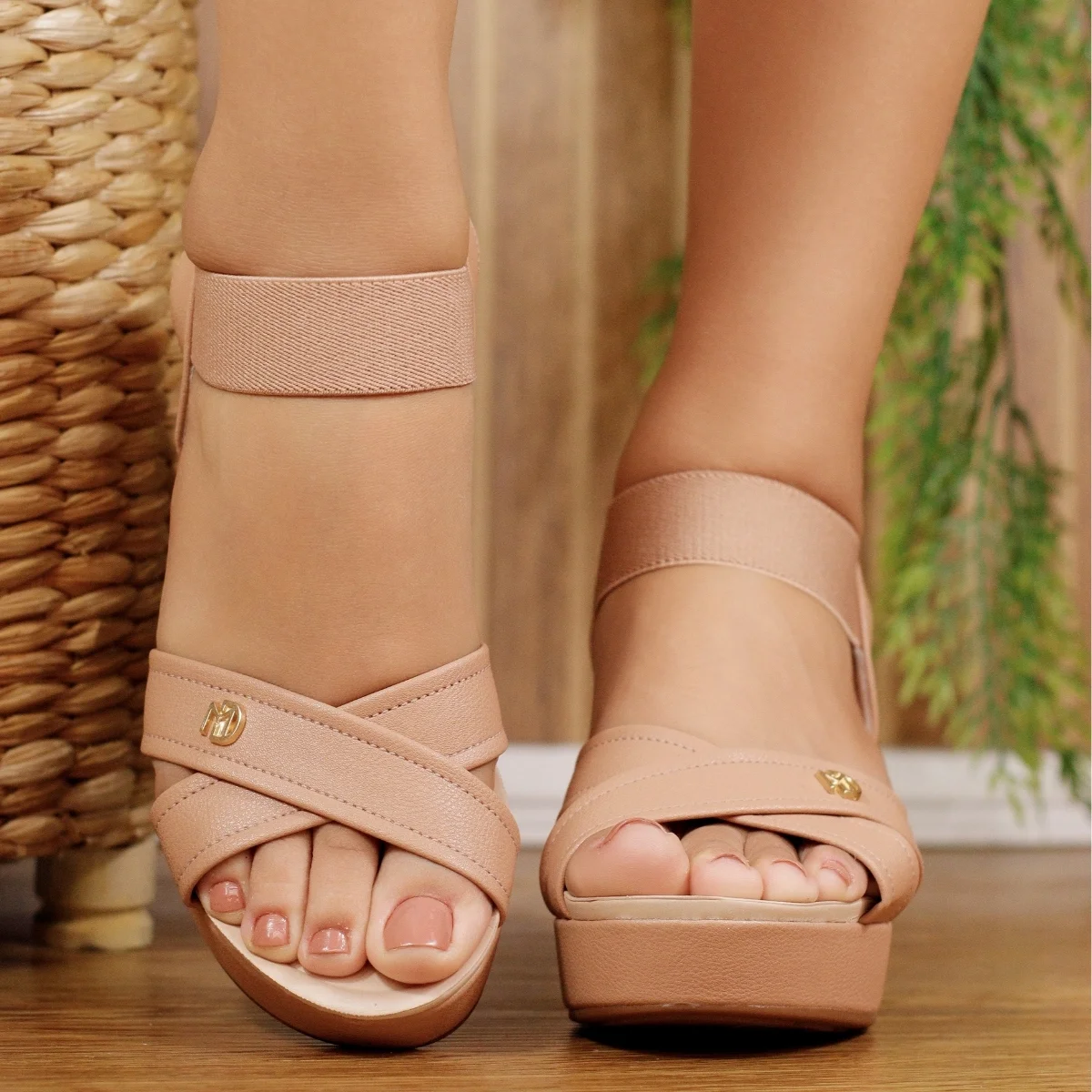 O modelo conta com salto anabela que proporciona mais equilíbrio ao caminhar, além de tiras frontais que garantem melhor ajuste aos pés. A tira superior com elástico facilita o calce e oferece praticidade, adaptando-se ao formato do pé com mais conforto.
