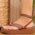 Material do cabedal: Confeccionado em material sintético de alta qualidade, com aplicação de tachinhas com brilho (strass), que parece uma jóia no pé, oferecendo durabilidade e um acabamento refinado.