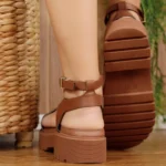 A Sandália Vizzano tratorada no estilo Ring Toe, com acessório dourado é uma papete feminina que combina estilo contemporâneo e conforto, ideal para mulheres que buscam um calçado versátil para o dia a dia.
