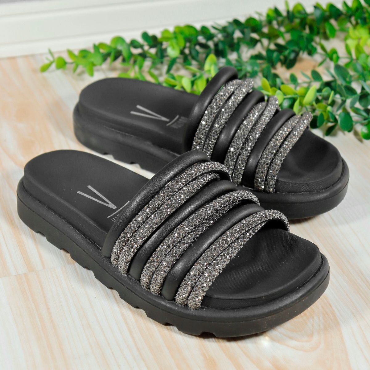Sandália Vizzano Slide Feminina Flatform Brilho 6459.132
