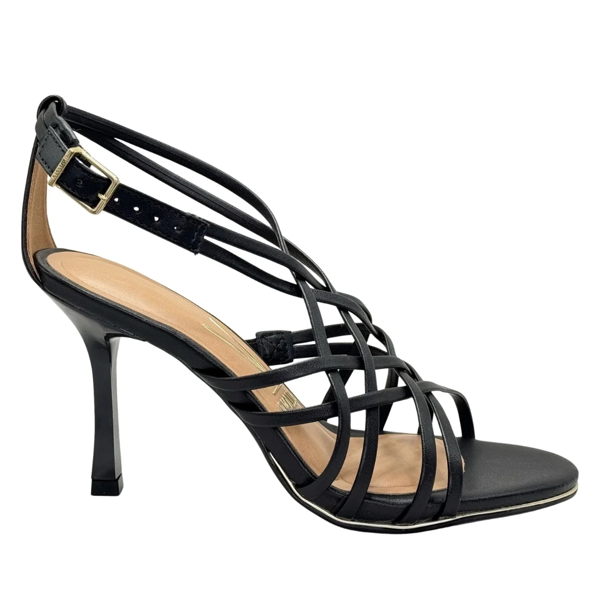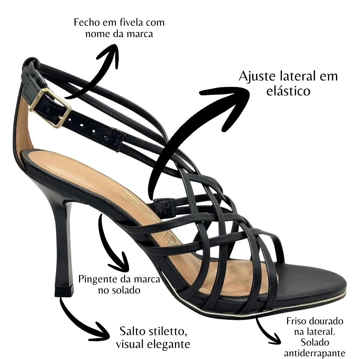 Sandália feminina da marca Vizzano com salto fino e alto. Produto delicado e com belas tiras que deixam os pés seguros. Fechamento ao pé através de fivela de abotoar.