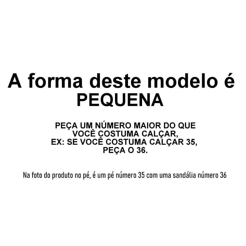 E O QUE ISSO QUER DIZER? Quer dizer que a forma desse produto é PEQUENA E VOCÊ DEVE PEDUR UM NÚMERO MAIOR DO QUE COSTUMA CALÇAR