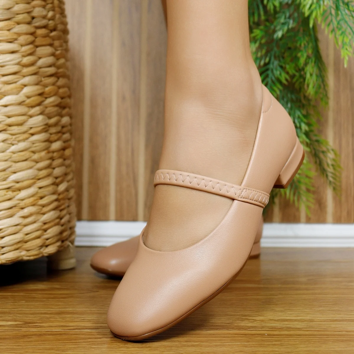 O solado flat na dianteira e o salto bloco baixo na traseira proporciona uma pisada suave e confortável, ela se destaca pelo detalhe da tira que passa sobre o pé e pela combinação de materiais. Essa tira adiciona um toque de elegância e sofisticação ao calçado, além de proporcionar um ajuste perfeito ao formato do pé, garantindo o máximo de conforto durante o uso. Feita com materiais de alta qualidade,o sapato é a escolha ideal para mulheres que desejam um calçado versátil, que combina com diferentes looks e ocasiões, sem deixar de lado o bem-estar.