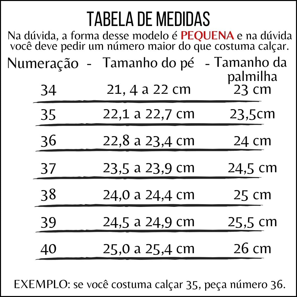 FORMA PEQUENA, PEÇA UM NÚMERO A MAIS DO QUE COSTUMA CALÇAR.