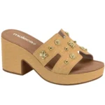 O Tamanco Moleca 5549.105 é a fusão perfeita entre conforto e sofisticação. Com tiras largas e aplicação de pedrarias delicadas, ele eleva qualquer produção com um toque sutil de brilho.
