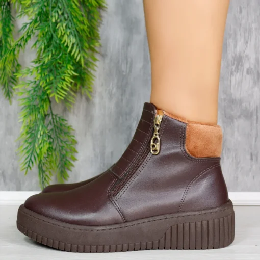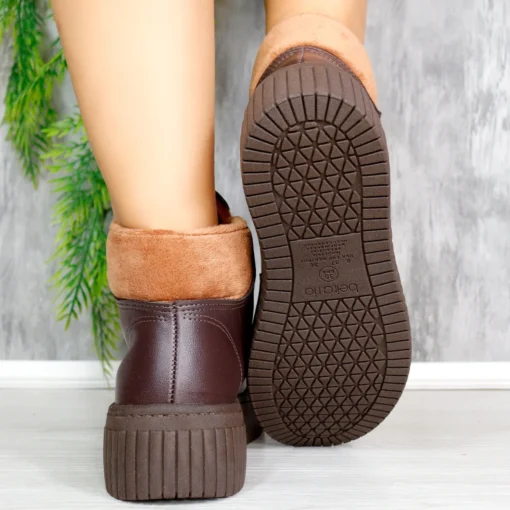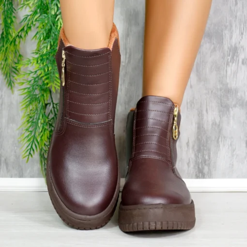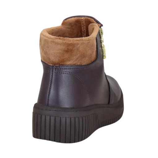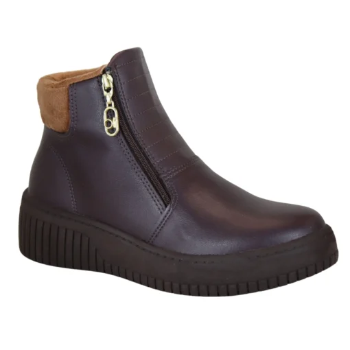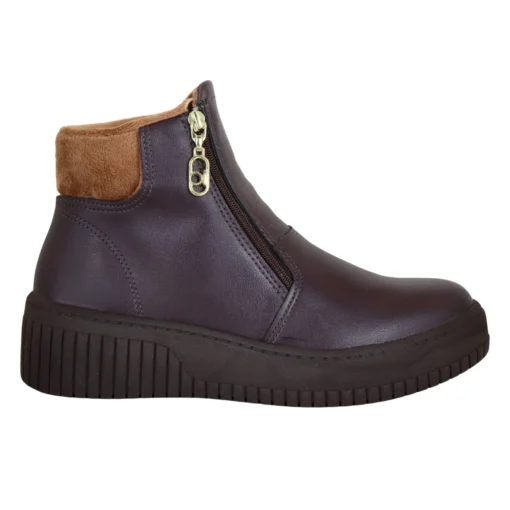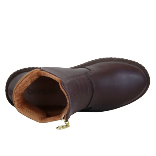Tênis Abotinado Beira Rio Cano Curto, confeccionada em material sintético de alta qualidade com acabamento liso na cor marrom. Possui zíper lateral funcional com puxador metálico dourado, que facilita o calce e adiciona um detalhe moderno ao design. O interior é forrado com material macio e acolchoado, incluindo detalhe em tecido peluciado na parte superior do cano, proporcionando conforto e aquecimento. O solado emborrachado com frisos garante aderência e segurança ao caminhar. Ideal para compor looks de inverno com estilo e praticidade.
