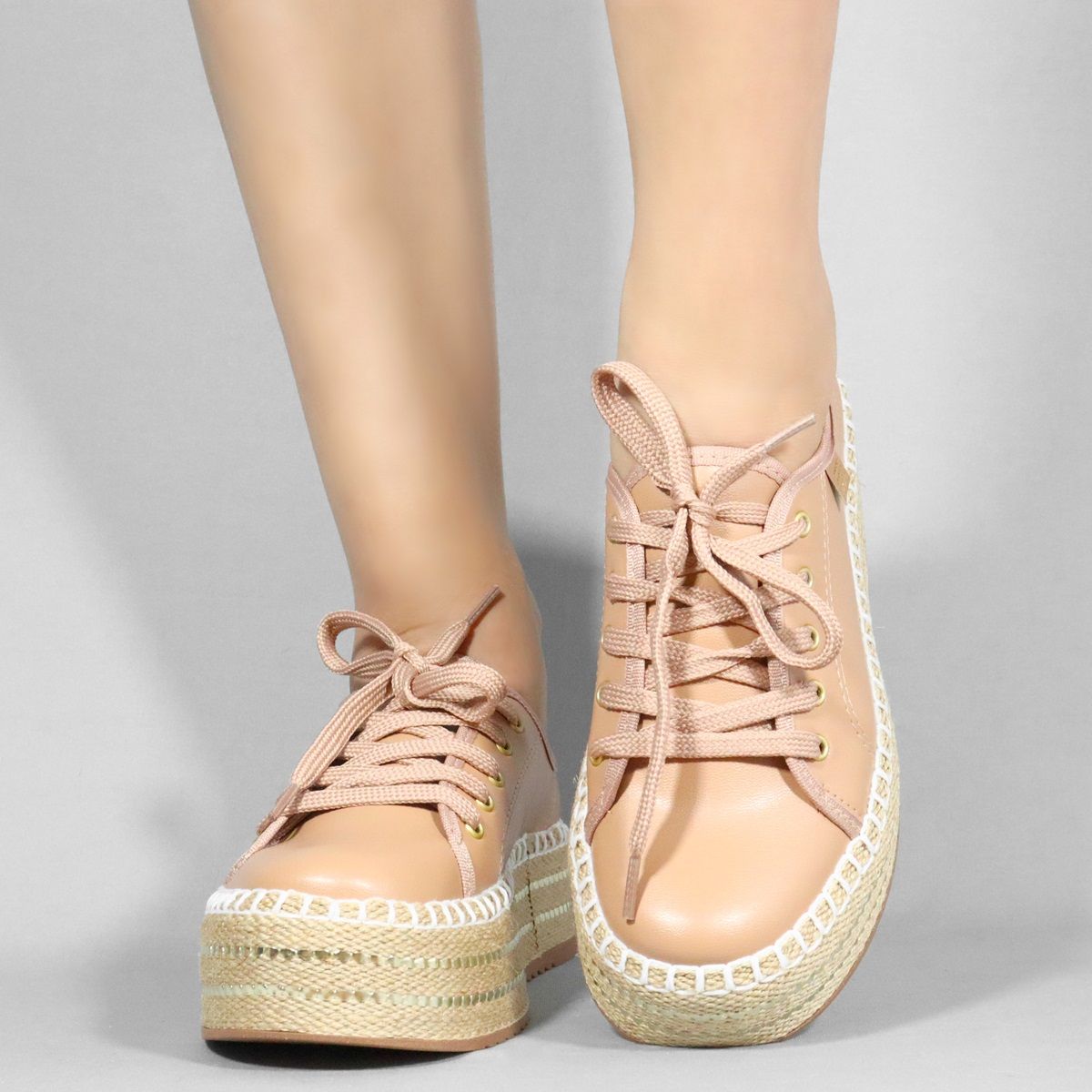 Conheça o Tênis Casual Plataforma Corda Feminino Salto Flat De Cadarço Beira Rio 4232.410
