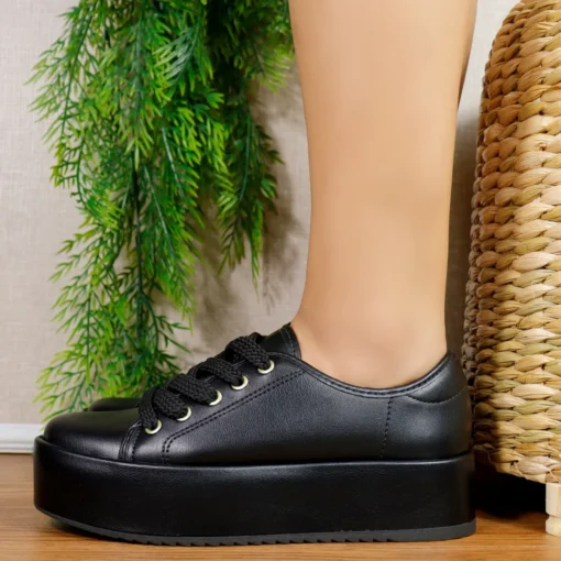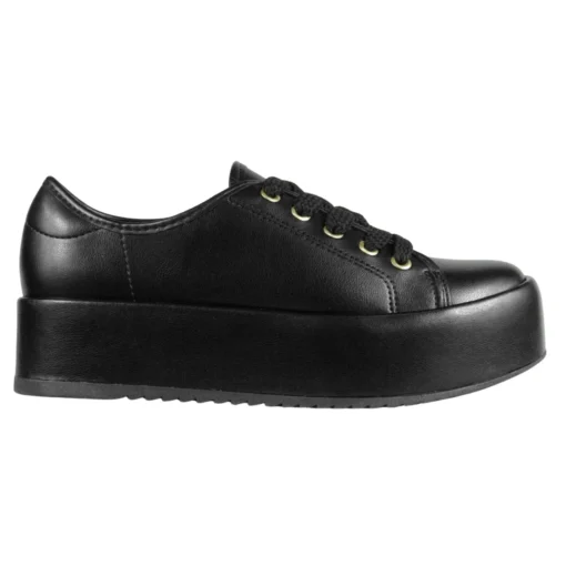 Seu cabedal em material sintético de alta qualidade oferece resistência e fácil limpeza, enquanto o interior é macio e acolchoado, garantindo conforto prolongado. O destaque fica por conta da sola plataforma, que adiciona alguns centímetros de altura e um toque fashion ao look.