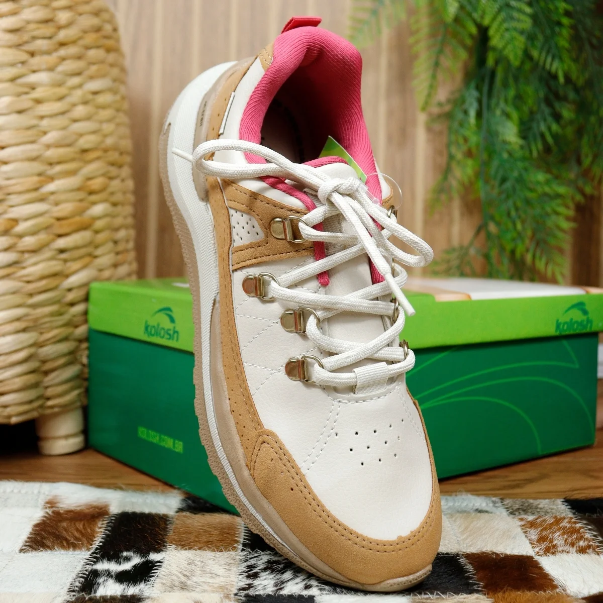 O Tênis Feminino Kolosh é a escolha perfeita para mulheres que buscam conforto, estilo e praticidade no dia a dia. Com um design moderno e detalhes que fazem a diferença, este tênis é leve e se destaca pelos ilhoses metalizados na lateral e pelos cadarços que garantem um ajuste perfeito aos pés. Além disso, os dois puxadores em fita, localizados no calcanhar e na parte frontal, facilitam o calce e otimizam seu tempo. A tecnologia também é um ponto forte do Tênis Kolosh Trail. Os microfuros estrategicamente posicionados nas laterais e na parte frontal garantem a respirabilidade dos pés, mantendo-os frescos e confortáveis ao longo do dia. A palmilha impulse+ de memória inteligente, macia e leve, proporciona uma sensação de bem-estar a cada passo. E o melhor: ela é feita com 2% de borracha reaproveitada, demonstrando o compromisso da Kolosh com a sustentabilidade. A sola Touch+ com 5 cm oferece um design bicolor que combina com tudo, além de um formato dentado que garante maior aderência e segurança ao caminhar. Seja para um passeio no parque, um dia de trabalho ou um momento de lazer, este tênis é a escolha ideal para mulheres que não abrem mão do conforto, estilo e segurança.