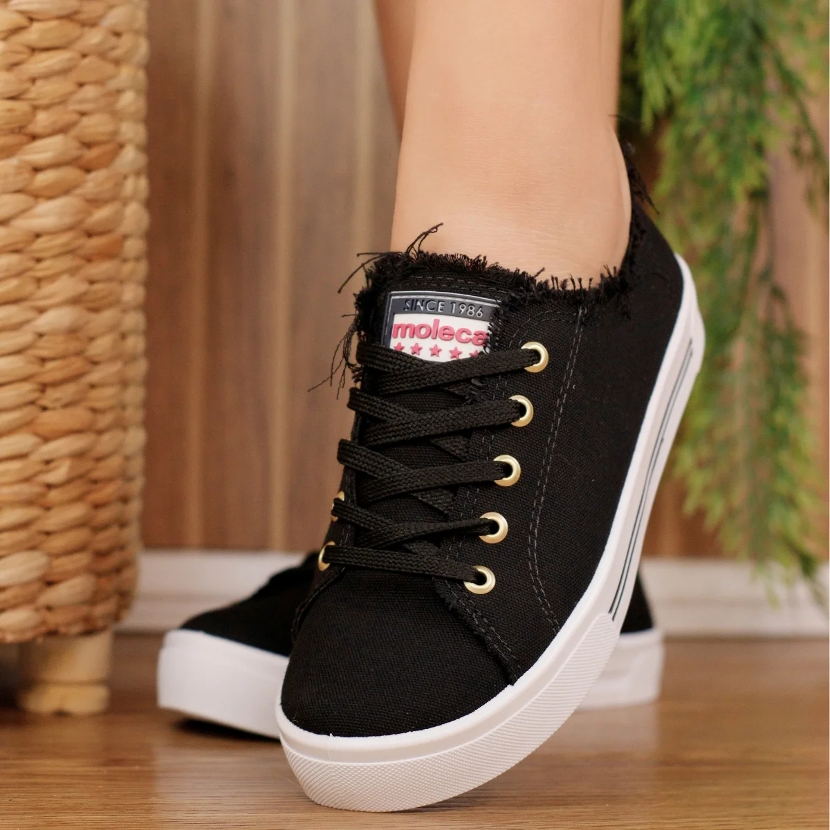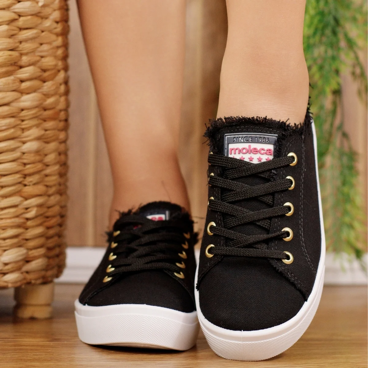 O visual despojado com detalhes em lona desfiada confere um estilo contemporâneo e descolado, perfeito para combinar com jeans, saias e vestidos. Essa versatilidade faz do tênis Moleca um item essencial para o guarda-roupa feminino que valoriza praticidade sem abrir mão do charme.