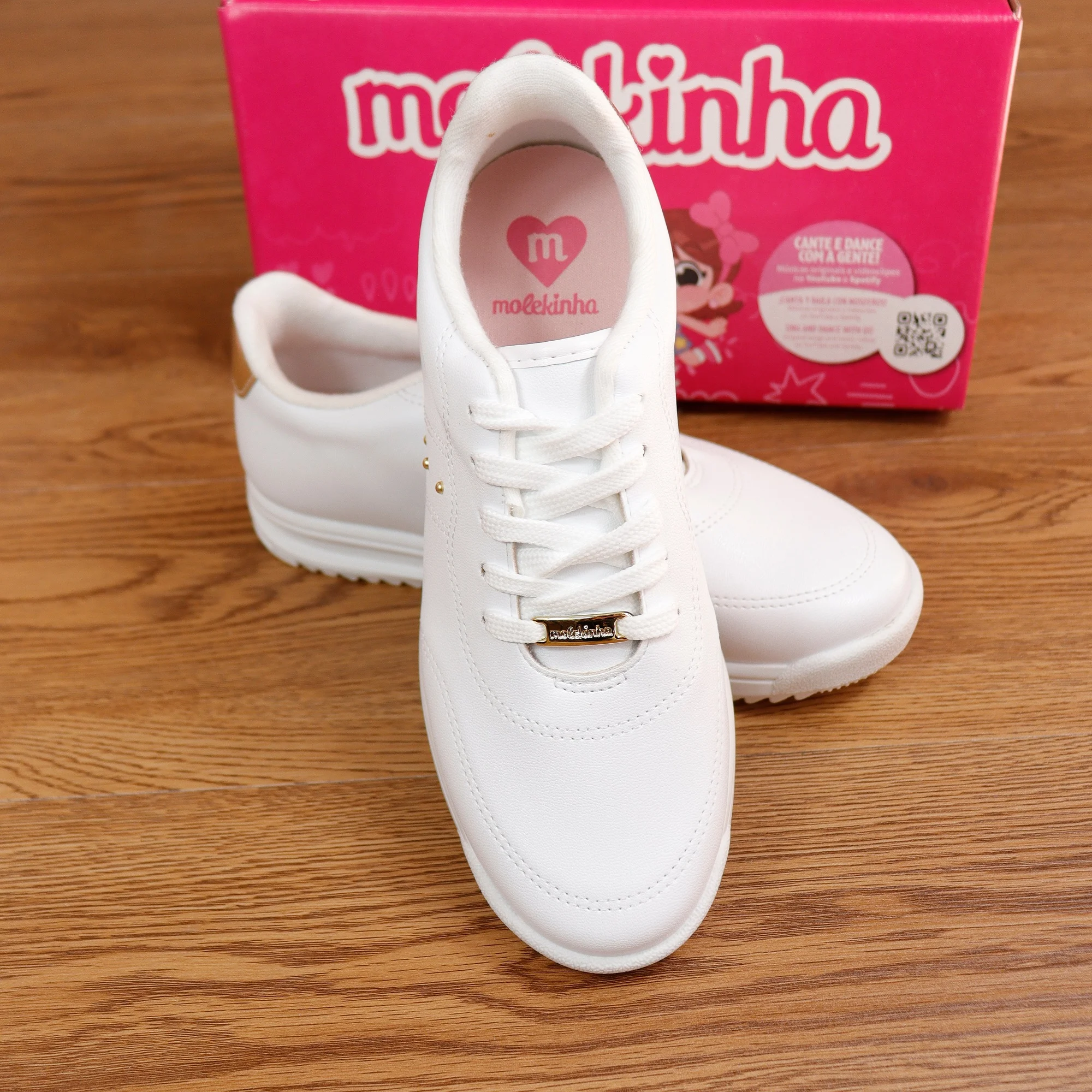 O Tênis Infantil Menina Molekinha 2583106 é o calçado ideal para as pequenas que amam brilhar. Seu design casual é realçado pelos delicados detalhes dourados que dão um toque de sofisticação e estilo fashionista. Desenvolvido para oferecer máximo conforto e praticidade no calce, este tênis acompanha a rotina das meninas com muita leveza e segurança, sendo perfeito para a escola ou momentos de lazer.