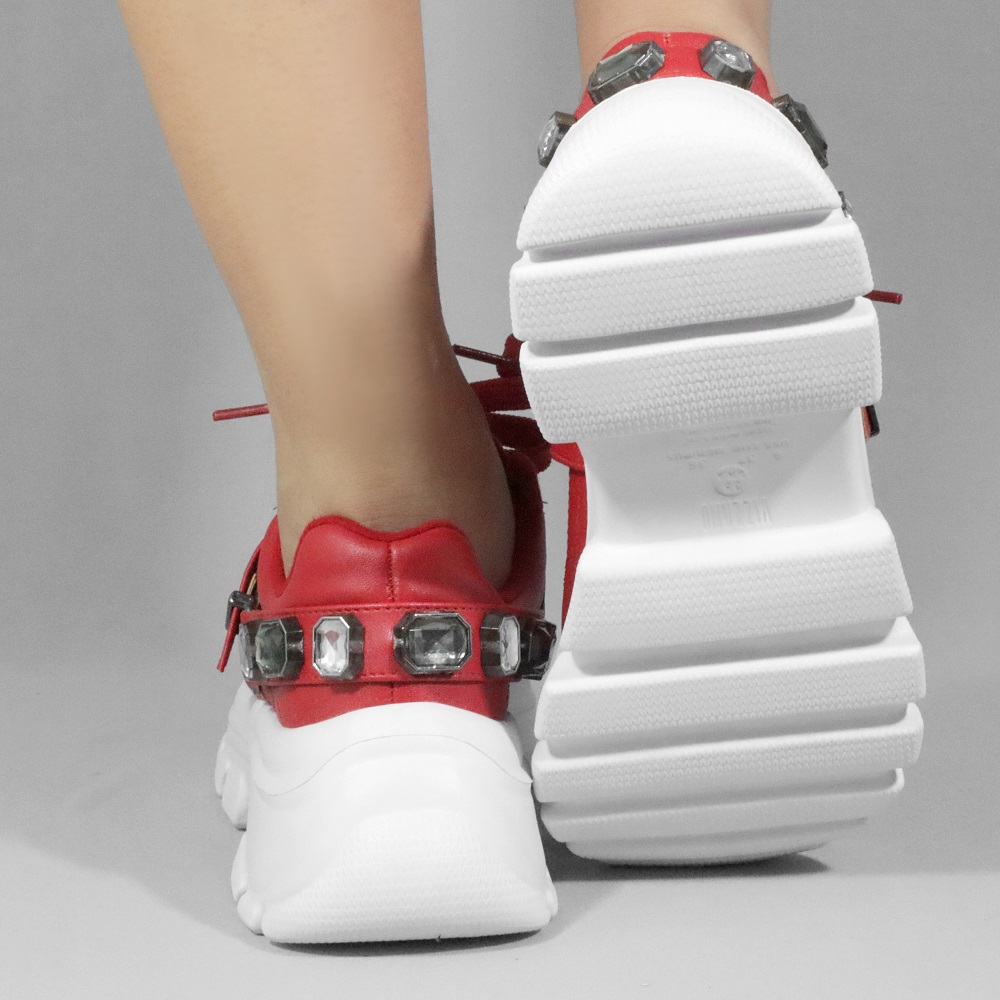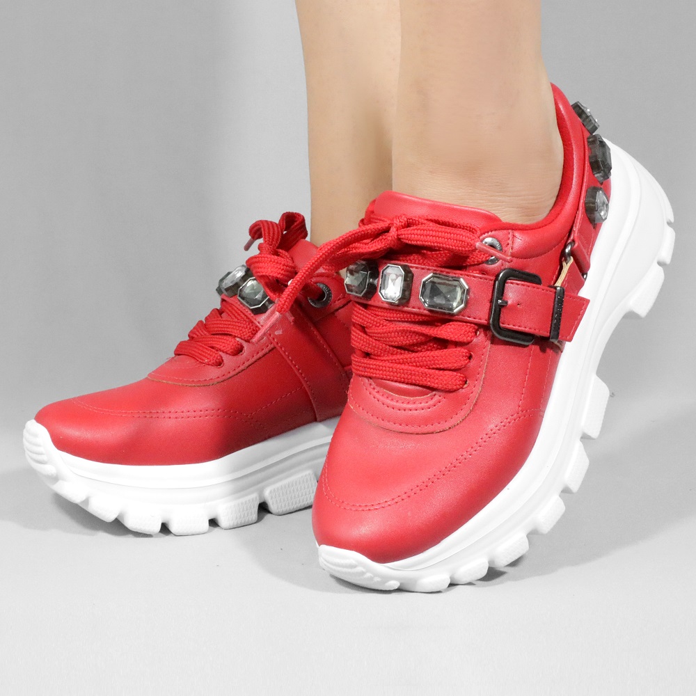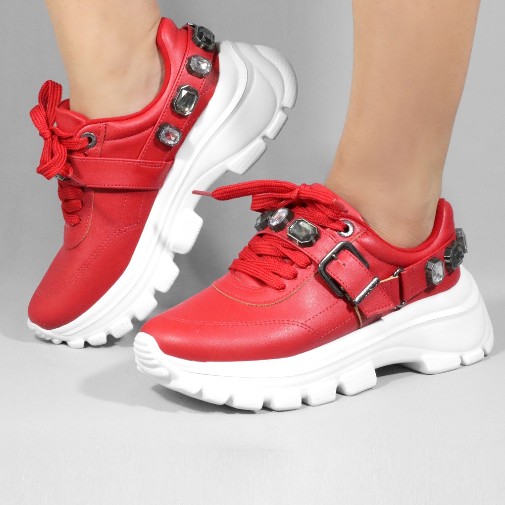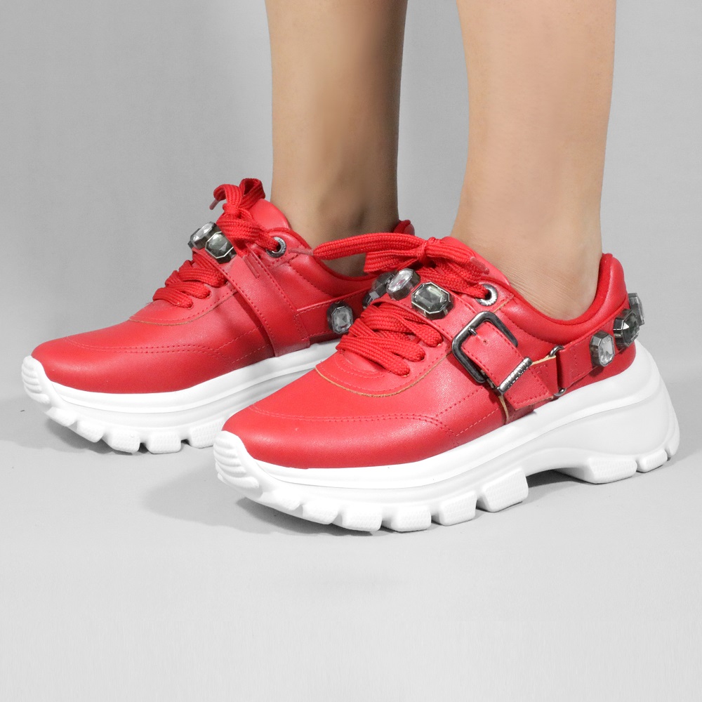 Tênis casual feminino estilo chuncky em material napa de alta qualidade. Possui uma fivela grande e pedraria no cabedal. Tipo de tênis fashion mas é uma ótima escolha para ser usado no dia-a-dia devido a qualidade que a marca usa nos materiais e o conforto da sola alta. Segue um pouco a tendência do tenis “Balenciaga” porém com adaptações do gosto brasileiro. Combina com diversos tipos de looks de verão e inverno.